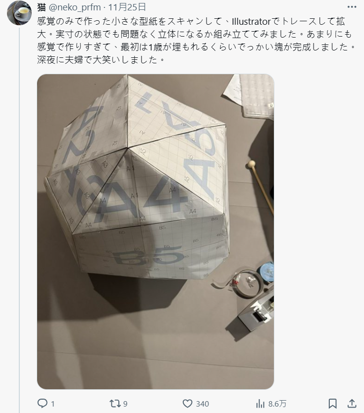結果第一次做出來的模型居然大到足以把我們家 1 歲寶寶整個埋進去!當時我們夫妻倆深夜爆笑,笑到停不下來。