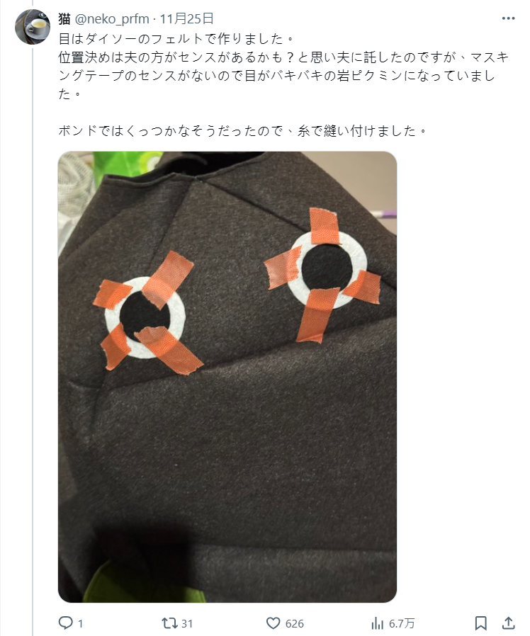 近日日本 X 上,有位推主分享了自己替一歲小孩製作的「岩石皮克敏」的 Cos 服裝,超可愛的樣貌獲得大量網友的讚賞,尤其還是手工自行製作,讓人讚嘆這樣的製作水準跟創意。