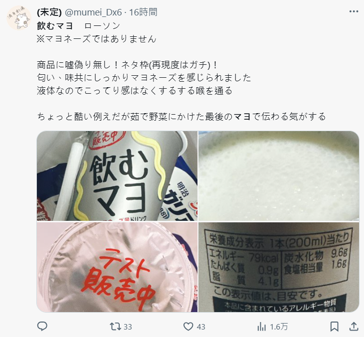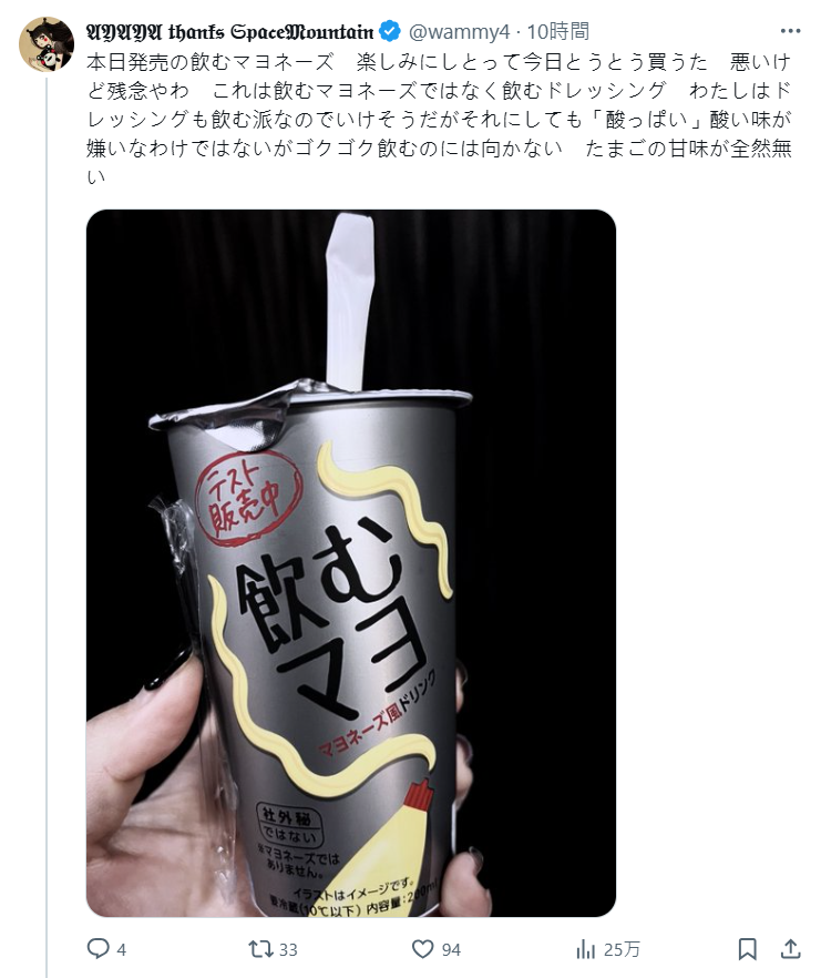 不過到底味道如何呢,X 上有勇者試喝並分享心得,眾多回饋中有人認為「真的就像喝稀釋過的美乃滋一樣的味道。」,也有人認為根本不是美乃滋應該比較像是「喝的沙拉醬」,看來評價可有點兩極。
