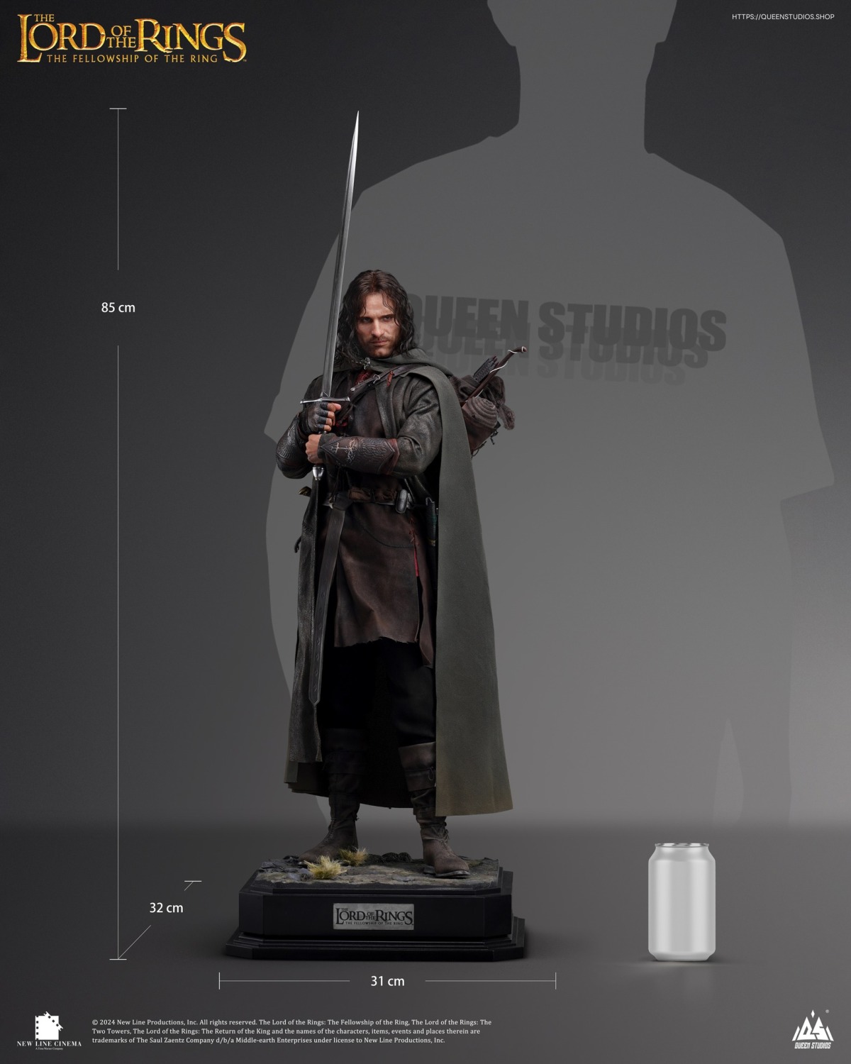 擅長以大比例雕像表現角色魅力、重現逼真細節的造型廠牌 Queen Studios 日前發表了出自出自奇幻史詩《魔戒》的最新商品「亞拉岡」(Aragorn)1/3 比例全身雕像!預計 2025 年第四季開始發貨,建議售價為 2,305 美金。