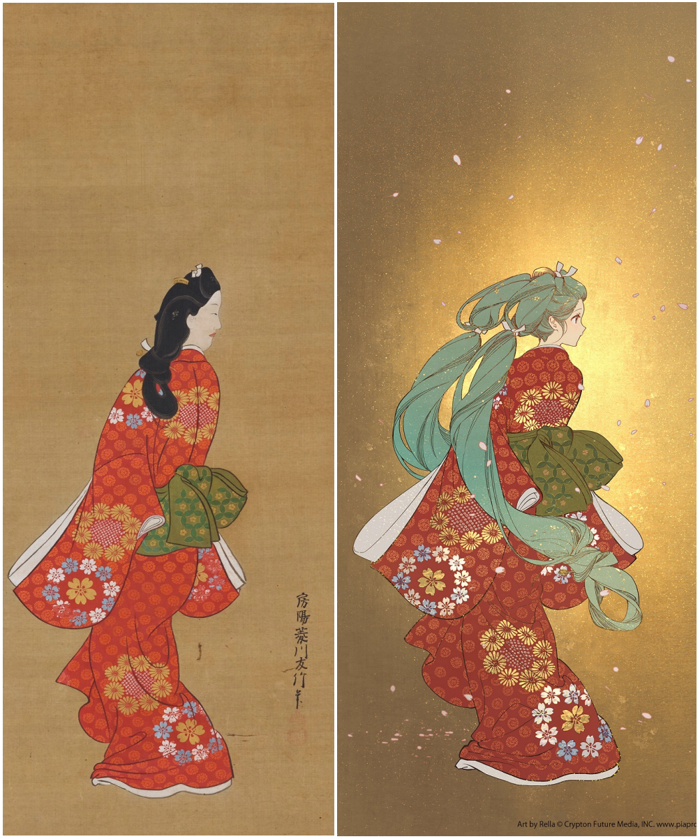2022 年為慶祝東京國立博物館 150 週年,展開了與 15 歲的初音攜手的合作修復募款計畫「跳舞埴輪&回眸美人修復計畫」。主要修復的文物為「跳舞的埴輪」與浮世繪之祖的江戶時代畫家:菱川師宣代表作「回眸美人圖(見返り美人図)」,並且與繪師 Rella 攜手,重新詮釋初音版本的回眸美人圖。