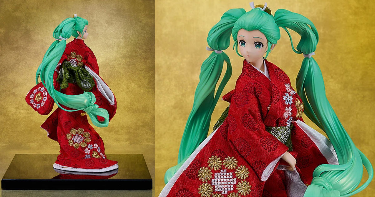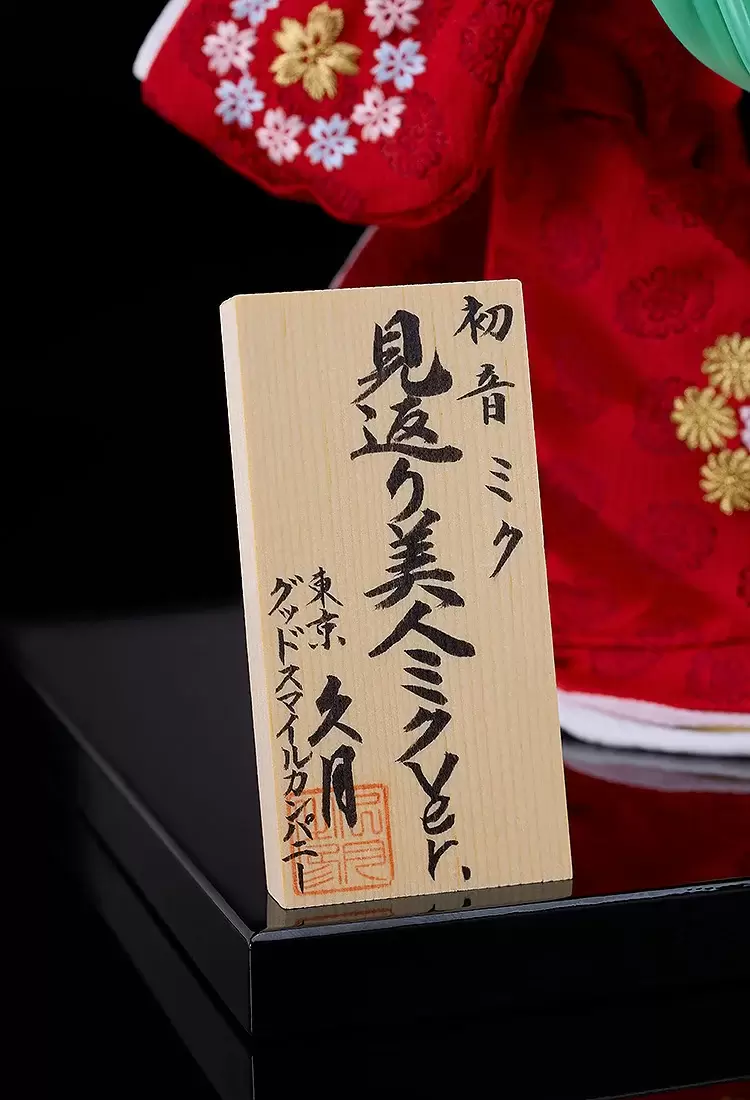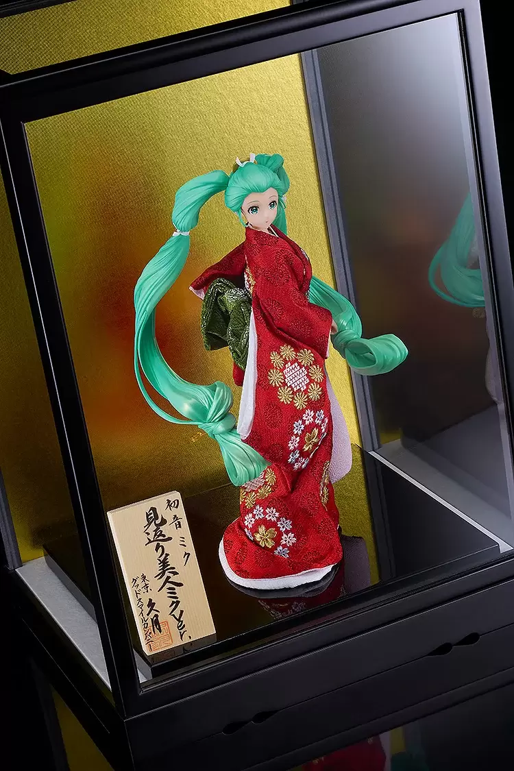 「初音未來 回眸美人未來Ver. -久月聯名日本人偶-,與代表日本的人偶製造商「久月」攜手,將繪師 Rella 繪製的回眸初音立體化,實現日本人偶✕模型的合作!尺寸約高 28 公分,由久月的人偶工匠手工製作,一襲華麗的紅色振袖使用實際的紡織品還原,細膩刺繡出振袖上的櫻花菊花等日式傳統圖紋,展現更加華麗、更為高貴的質感。
