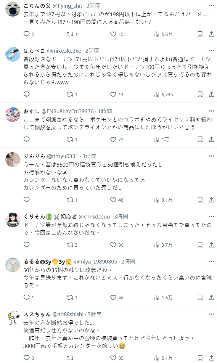 這樣的更動也讓許多粉絲不滿,可以接受調整,但是這樣的更動也太誇張,周邊越來越少,連能換的甜甜圈都縮水,這樣給人的感覺真的很糟糕,完全沒有福袋的感覺。