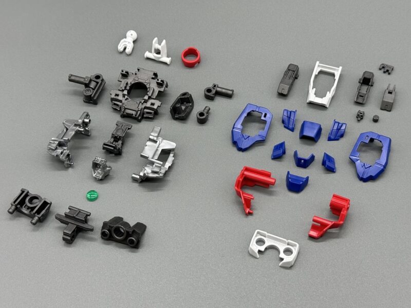 ▼ 上半身採用黑、白、藍、紅、銀、透明綠等零件構成,胸口的感測器同樣使用了「擬真金屬光澤質感零件」加上外側透明零件構成。