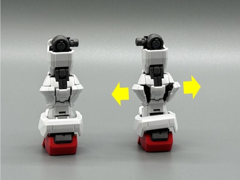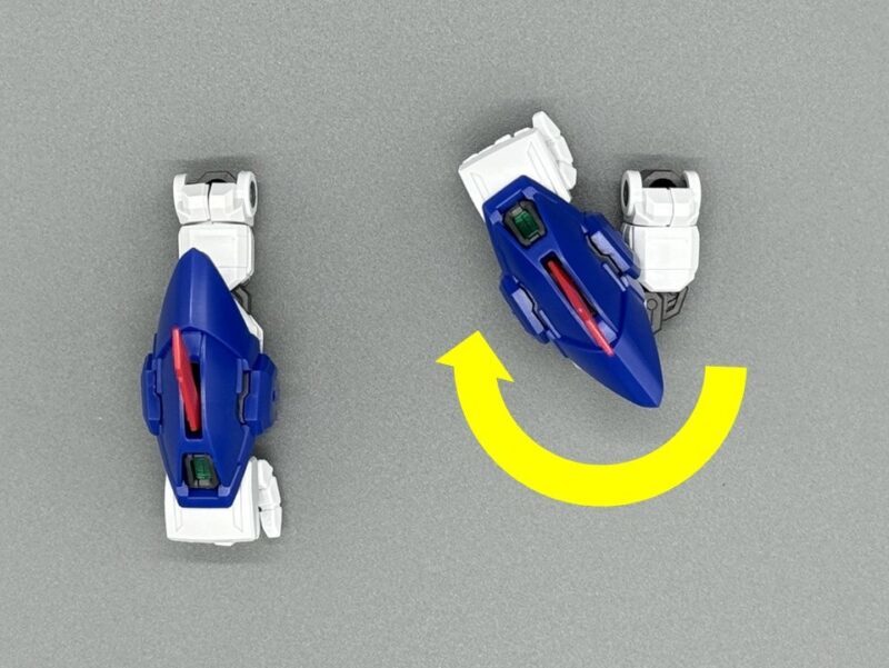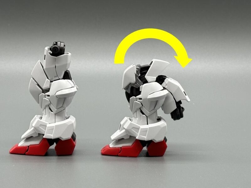 腰部包含前、側、後方共 6 片裙甲皆有獨立可動機構,能夠擴大髖關節的可動範圍。