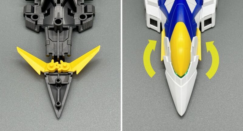 ▼ 機體各部具備表現機構,能夠搭配盾牌再現「新飛鳥形態」的大氣層外模式、大氣層內模式、大氣層突入模式。