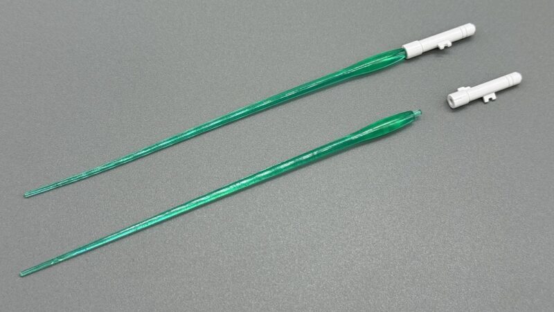 ▼ 兩把光束軍刀附有綠色光束特效,刀柄平時可收納於副翼的支架中。