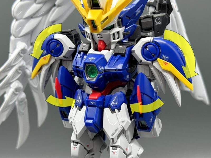 MGSD 系列第三彈商品「飛翼鋼彈零式EW」將 MG 等級的分色分件、可動設計融入 12 公分高的 SD 鋼彈身軀中,除了具備高密度的細節造型外,更使用了新型材質與可動新機構,能從內部骨架開始逐步構築出機體樣貌,讓以往印象給人過於簡陋的 SD 鋼彈獲得高階鋼普拉商品應有的精密結構。