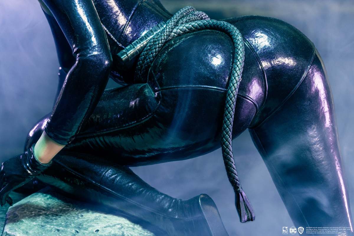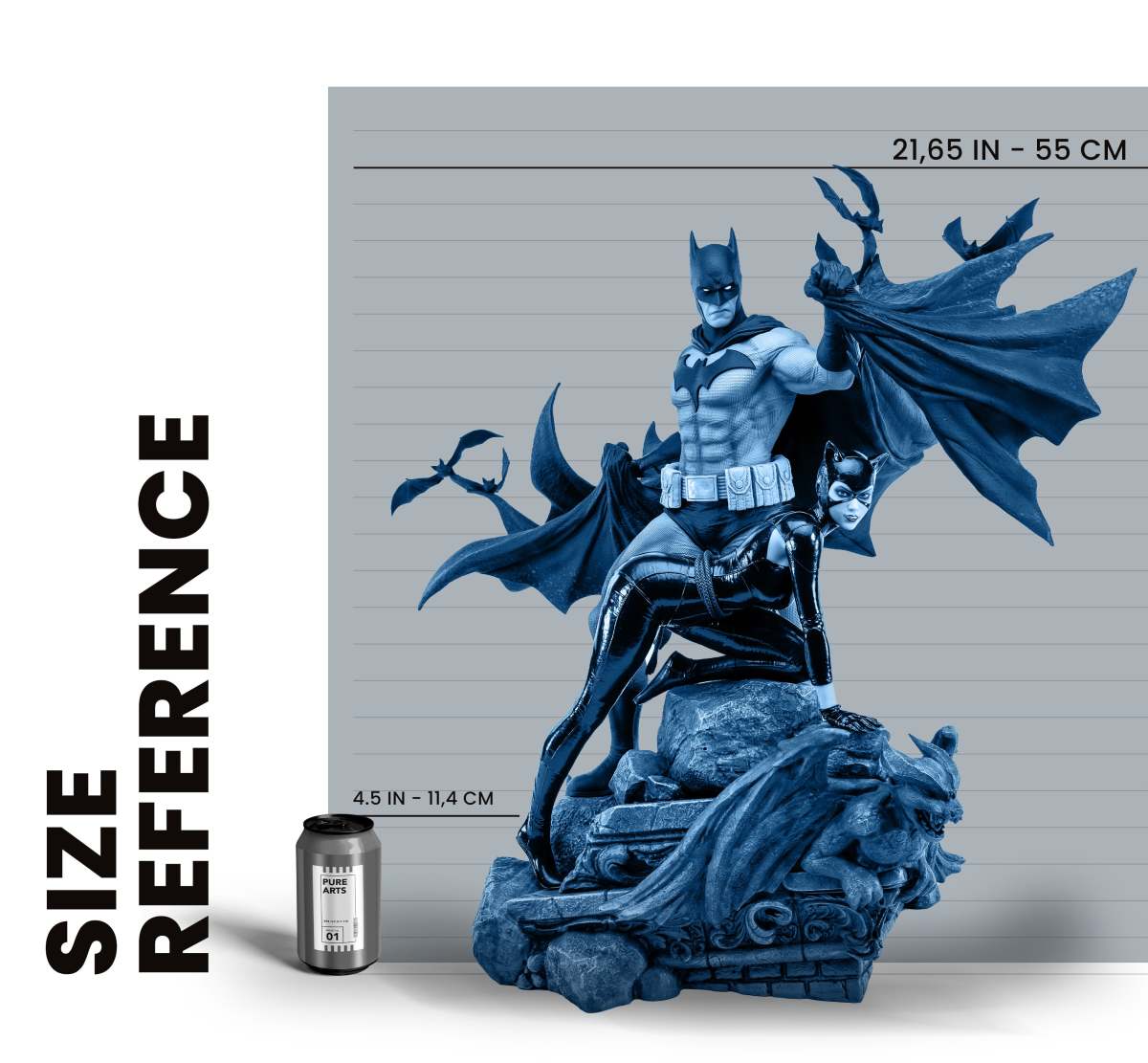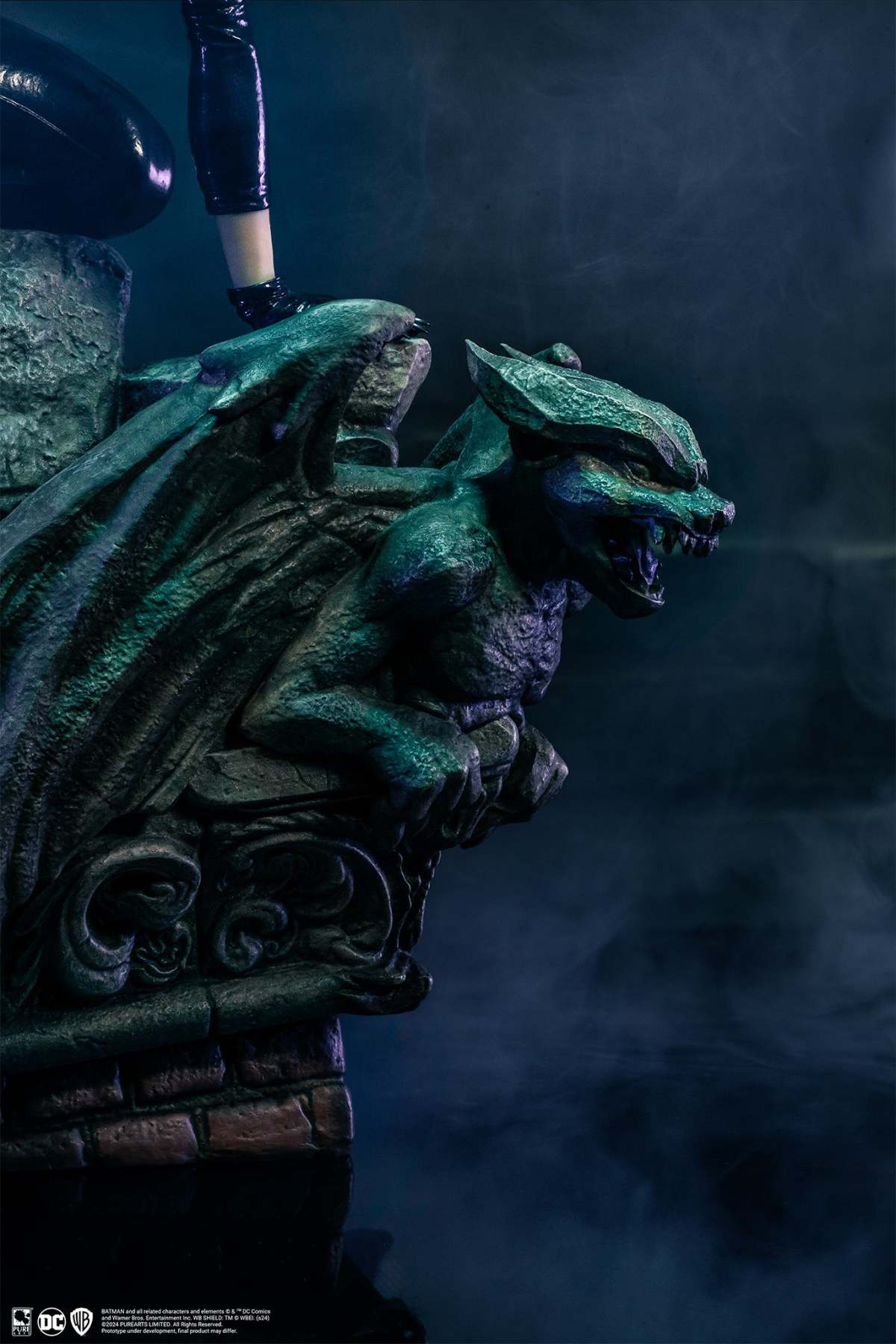 本次的「蝙蝠俠 & 貓女重聚」限定版 1/4 比例收藏雕像將漫畫《蝙蝠俠:班恩之城》第 78 期由 Tony S. Daniel 繪製的封面插圖立體化,製作出蝙蝠俠和貓女在建築樓頂中世紀建築風格的塔樓樓頂會面的場景,雕刻還原蝙蝠俠壯碩的身形、貓女曼妙的身材曲線以及兩人服裝上的紋理及縫線等細節,蝙蝠俠披風的動態與蝙蝠相連接,呈現兩人被飛舞的蝙蝠包圍的視覺效果!貓女服裝以亮光漆呈現漆皮光滑的質感,與蝙蝠俠的粗糙服裝對比,讓整體肌理上有更多層次的享受!
