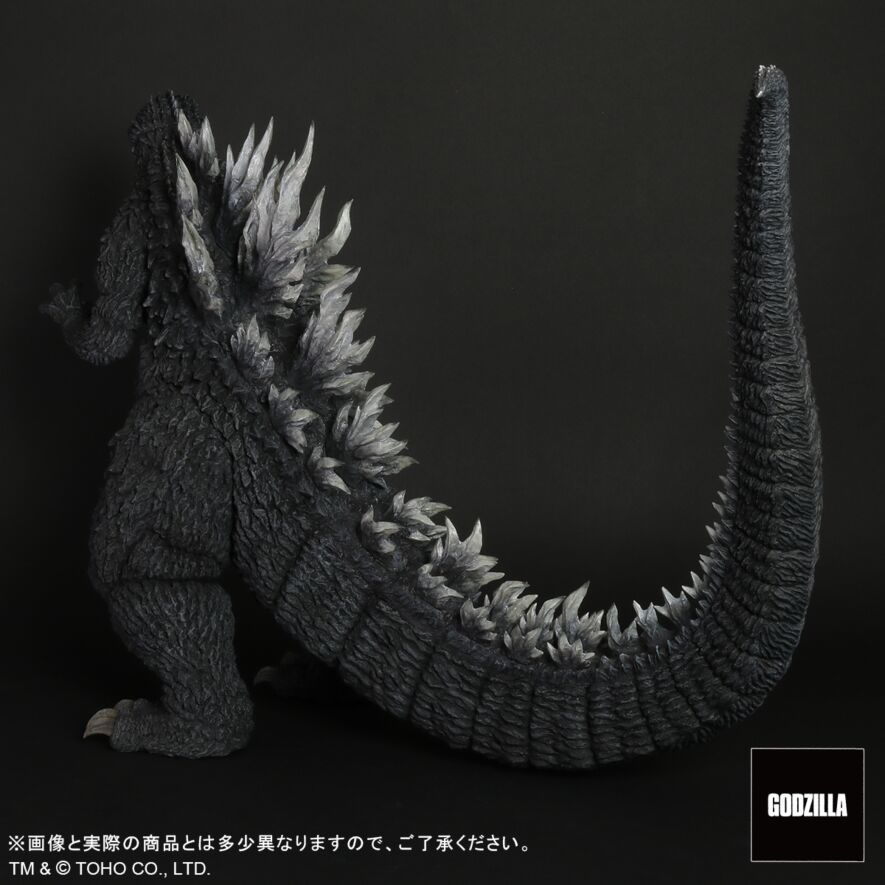 「Gigantic Series 哥吉拉(2002)」以全高約 47 公分、全長約 77 公分的魄力尺寸立體化,基於劇中戲服造型忠實再現尖銳的灰白背鰭、兇狠的頭部造型、頸部兩側與下顎延伸到尾巴的突起硬棘等特徵,並藉由精緻的色彩塗裝表現雙眼的水潤感、牙齒以及手腳爪泛黃的漸層,極具生物感。