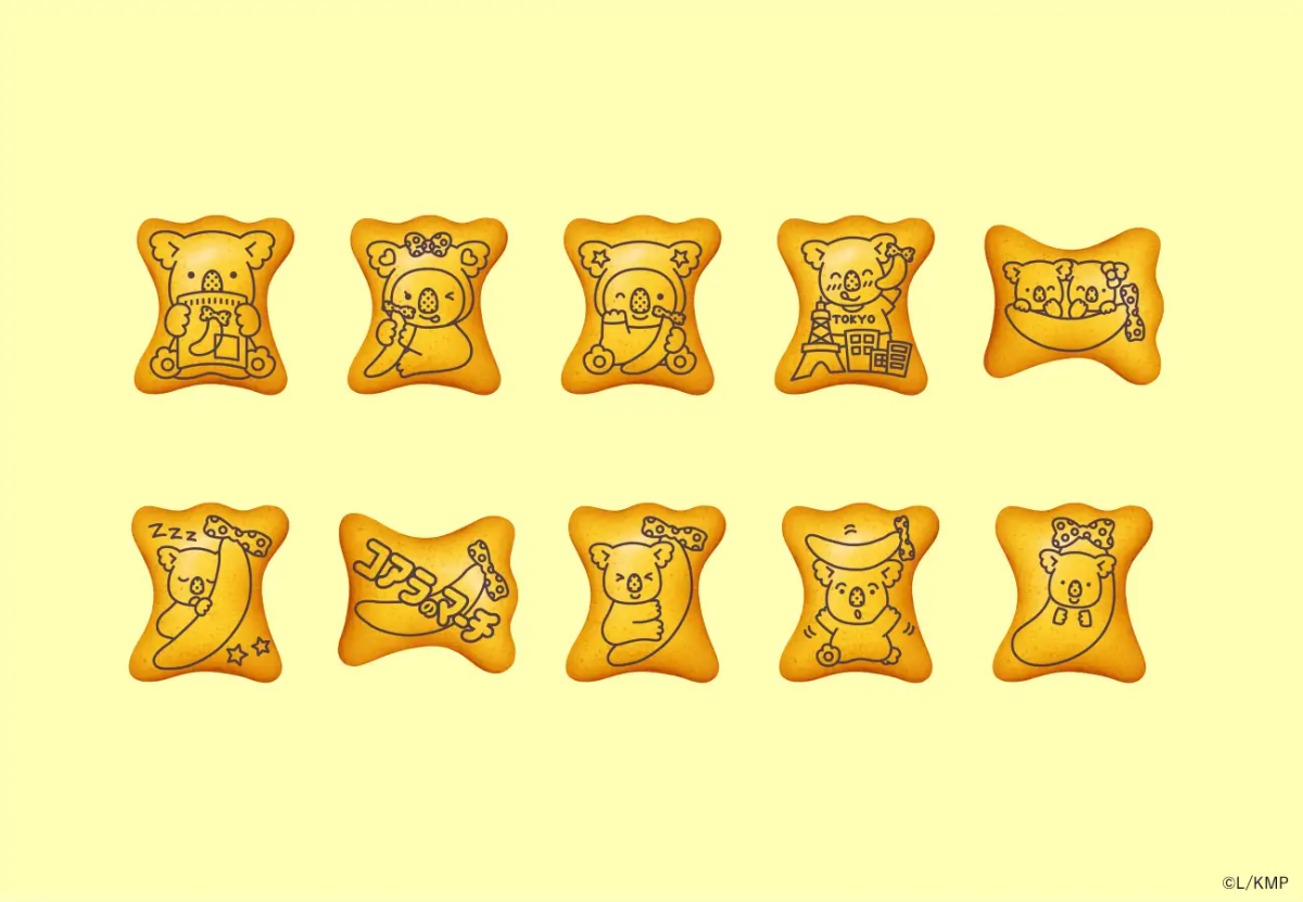 新聯名商品還推出多款原創餅乾圖案,包括 「拿著東京香蕉的小熊」、「穿著東京香蕉裝的小熊」、「搭配眉毛造型的東京香蕉的小熊」 等總計 10 種圖案。每一款設計都超級可愛,讓人邊吃邊挑選自己喜歡的圖案,增加趣味!