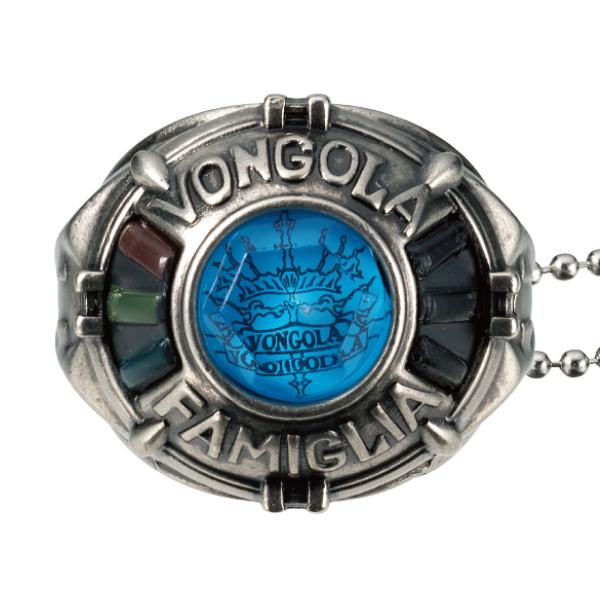 戒指直徑約 1.8 公分,同樣以合金材質打造且嵌有彩透材質的寶石,還原了所有彭哥列戒指解放型態的造型細節,收錄天空之戒、嵐之戒、雨之戒、晴之戒、雷之戒、雲之戒、霧之戒全部七種款式,每款也都附有一條球鏈,讓各位玩具人能夠將它作為吊飾配戴!