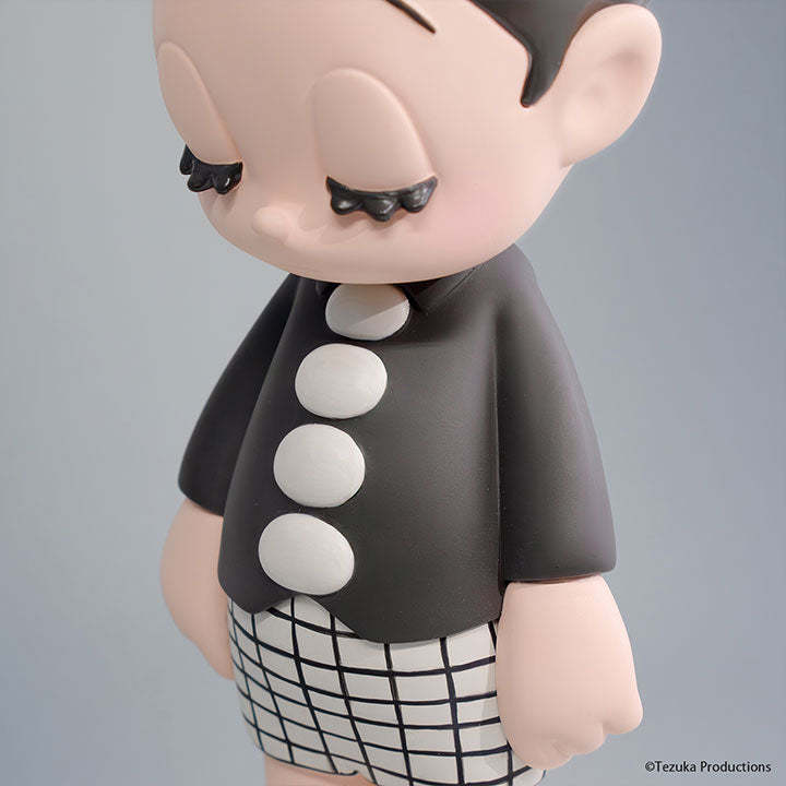本次的「小金剛大使」軟膠人偶高約 23 公分,由手塚製作監製開發,將手塚老師繪製特有且優美的曲線立體化,再現漫畫中豚八雜技團董事長在向眾人介紹小金剛時小金剛閉眼低頭的經典動態,並採用亮面及平面兩種漆面還原漫畫中黑襯衫配格紋褲的大使造型,增加視覺豐富度!包裝設計以漫畫雜誌為靈感,印有手塚老師作品中的精選畫格並以部分螢光色貼紙點綴,展現出簡樸而高雅的質感!