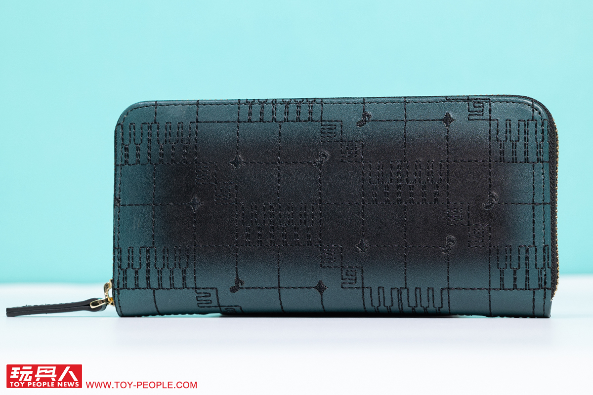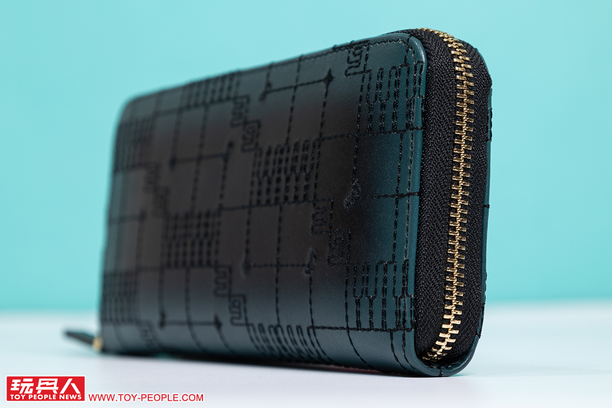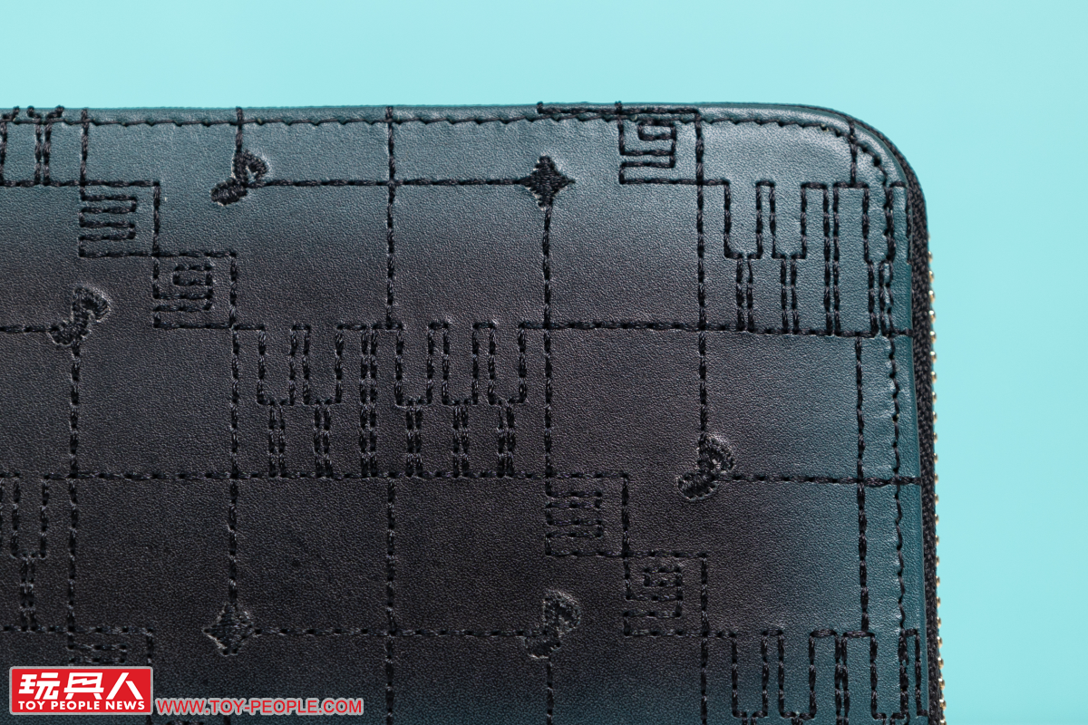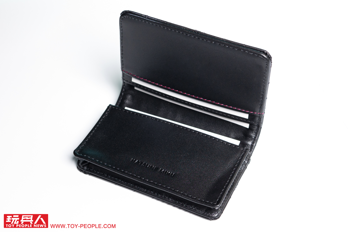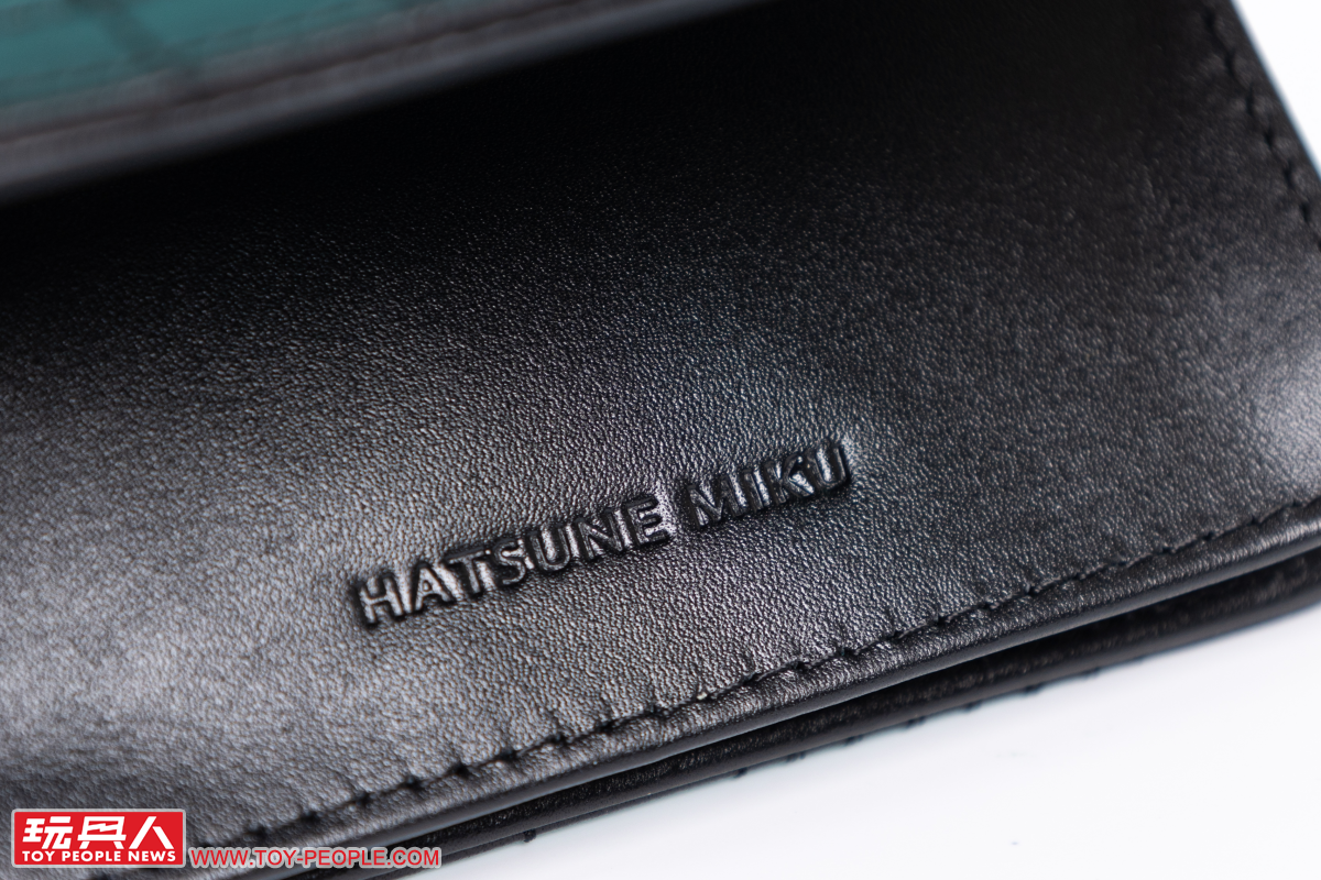 再來看到小編個人超級喜歡的皮件~皮夾是以主打柔軟觸感的 NUME皮革(牛皮)製作,並大膽地採用黑色、初音綠的雙色漸層,自中央向外側展開的渲染風格極具魅力;而在職場上使用頻率超高的名片夾則以單一的黑色呈現出洗鍊視覺效果,不過兩者都在表面施以音符、鋼琴紙卷之鍵盤為靈感的黑色刺繡,完全就是「懂的人肯定懂」的絕佳設計。