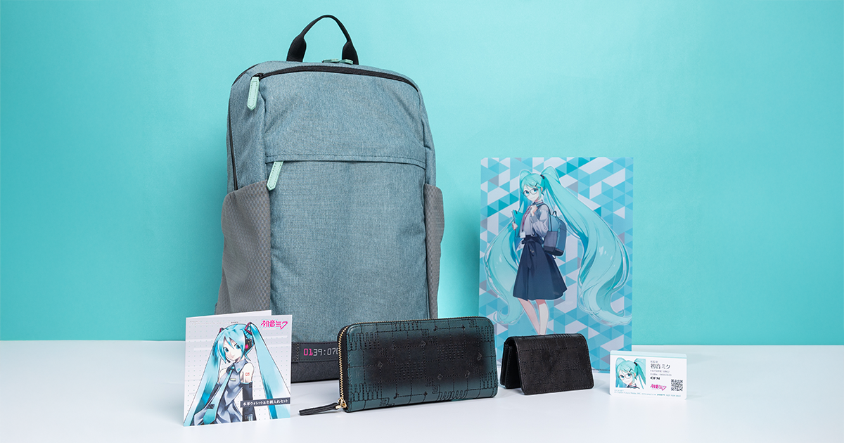 本次的主角是自 2007 年問世的虛擬歌姬初音未來,PREMICO 以她的形象要素為主軸,一共製作了 Miku綠、潮流黑兩款不同配色的電腦後背包,以及採用套組形式販售的真皮皮夾&名片夾。