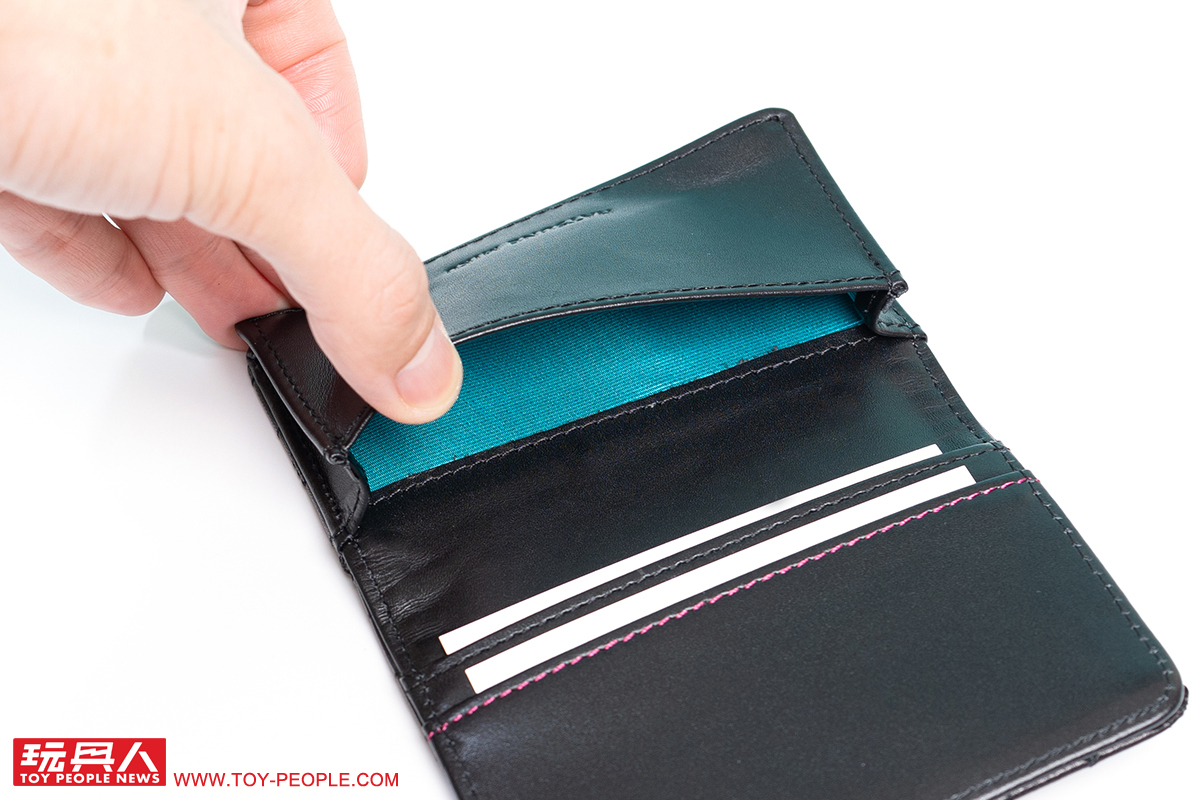 ▼ 主夾層的厚度可以放約 40 張名片,而對面的副夾層也能收納兩張卡片,包含信用卡、交通 IC 卡,增添本作的實用性。
