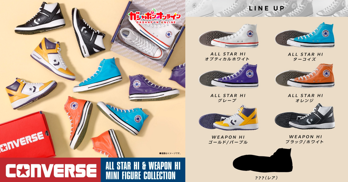 萬代公司轉蛋事業部 GASHAPON 繼「CONVERSE ALL STAR HI 迷你模型收藏」後再度推出以美國運動鞋公司 CONVERSE 為主題的新商品——「CONVERSE ALL STAR HI & WEAPON HI MINI 模型收藏」轉蛋,參考售價為每轉 500 日圓,預計於 2025 年 03 月下旬發售!