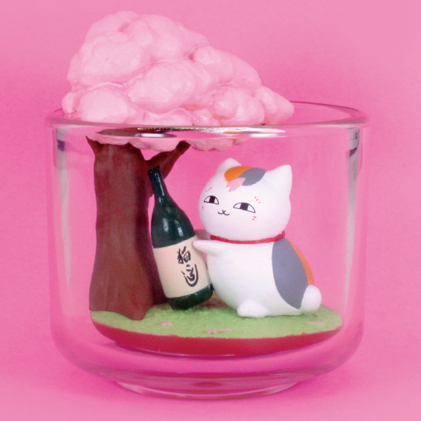 本次的「貓咪老師 四季繽紛微景觀」以四季變化為主題,將貓咪老師在春夏秋冬四個季節進行不同活動的模樣製作成約 4~5.5 公分的微縮模型,分別是春天喝著清酒賞櫻的模樣、夏天躺在海邊曬太陽喝啤酒的模樣、秋天躺在走廊上賞月的樣子以及冬天泡溫泉賞雪景的造型,每一款都被裝在玻璃杯狀的罩子之中,一字排開相當可愛,讓貓咪老師陪伴各位玩具人一起欣賞四季的各種美景吧!