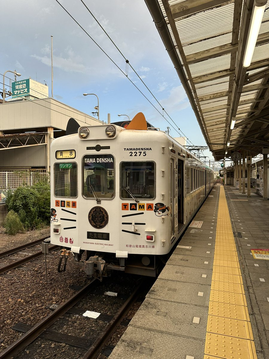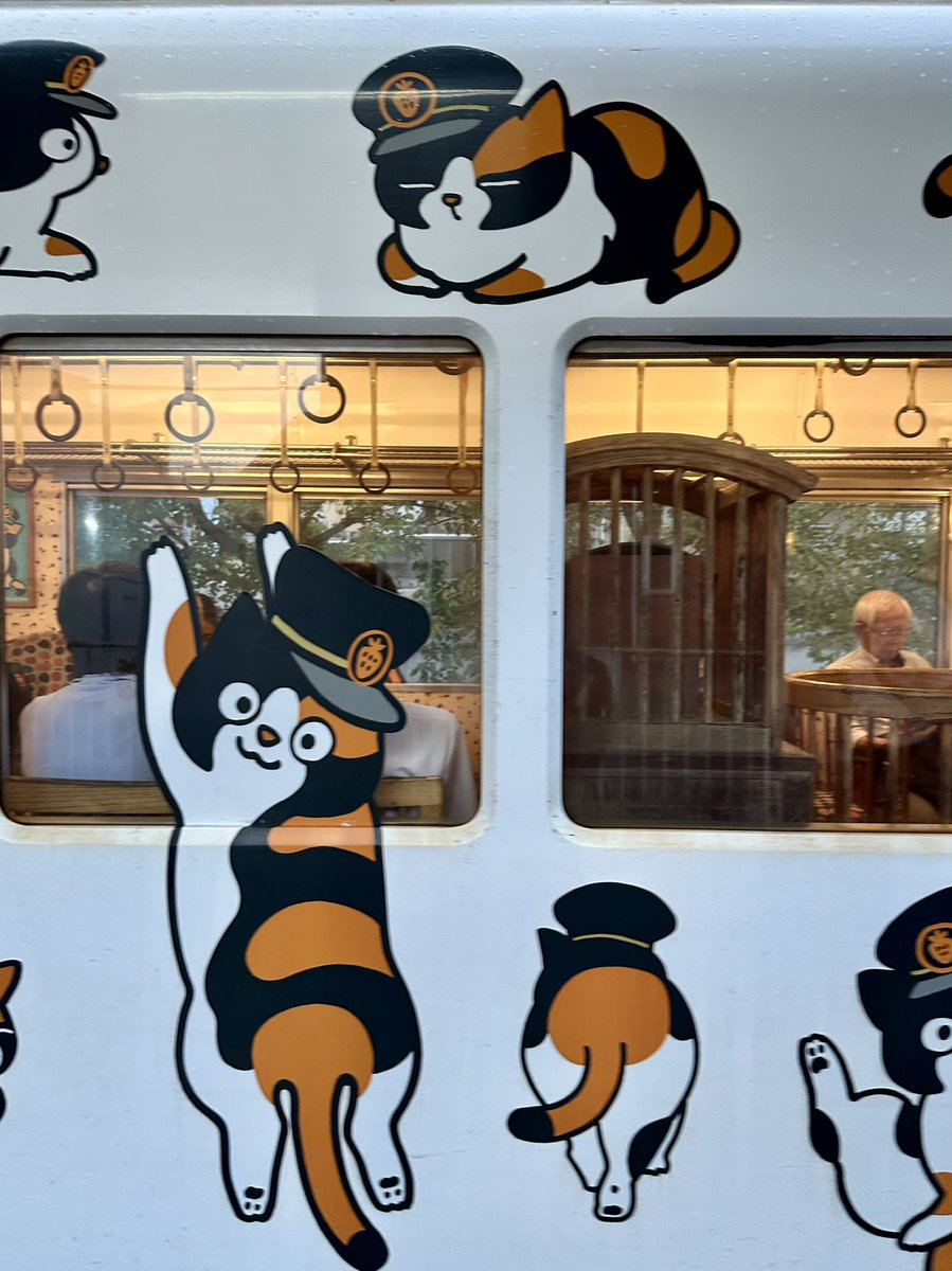 這也是和歌山電鐵貴志川線超級可愛的主題電車「たま電車」 ( 小玉電車 ),特別設計成貓咪站長的模樣,讓電車也變成他的造型,車箱內更佈滿了貓咪的插圖,真的會讓喵星人難以自拔。