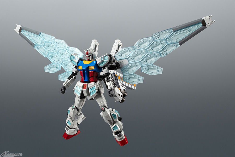 「ROBOT魂 RX-78F00/E 鋼彈用璃羽裝備」能夠搭配另售的「ROBOT魂 RX-78F00/E 鋼彈」本體使用,再現新規影像作品中登場的完整造型。從目前釋出的預覽圖可以看見,商品運用精密的造型與色彩重現背部雙翼、一對機械臂、大型推進器等組件,並且藉由透明藍零件表現華麗的太陽能板。