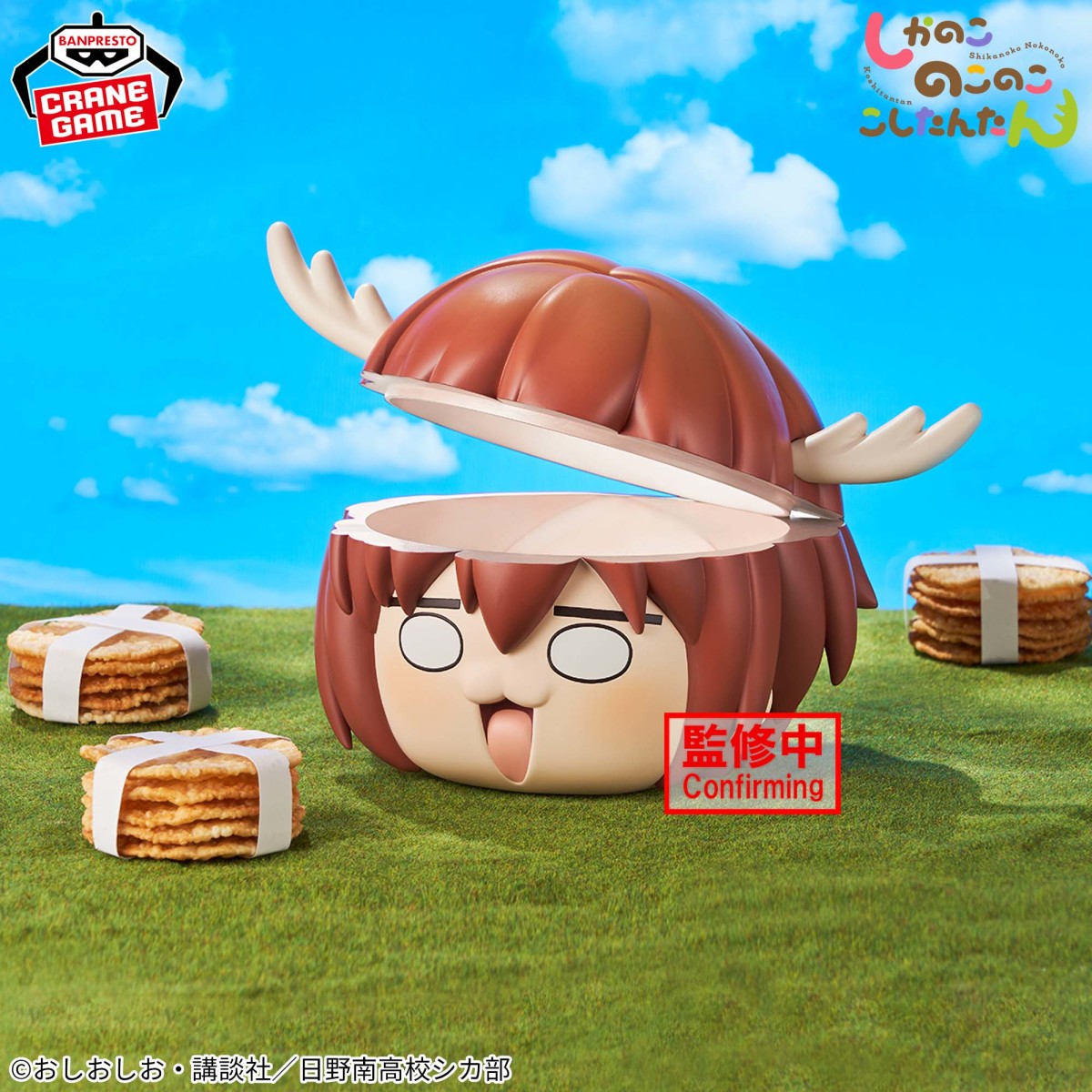 BANPRESTO「鹿乃子乃子小飾品盒」,尺寸約高 13 公分,以鹿乃子神秘的頭部為基礎,還原呆萌的(○ ω ○)表情,還能夠「啪」一聲打開,重現劇中令人印象深刻的場面!空空的腦袋裡可以放各種桌上常用的文具小物,甚至是鹿餅?無論怎麼看都具有很大的衝擊力!