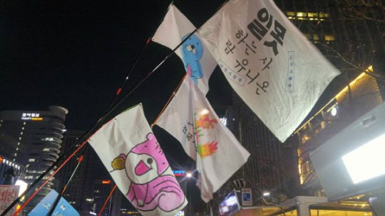 也有網友貼出,過去韓國發生社會運動時,就有部分民眾會攜帶類似的旗幟,雖然意義不明,但的確是某種特色 ( ? )
