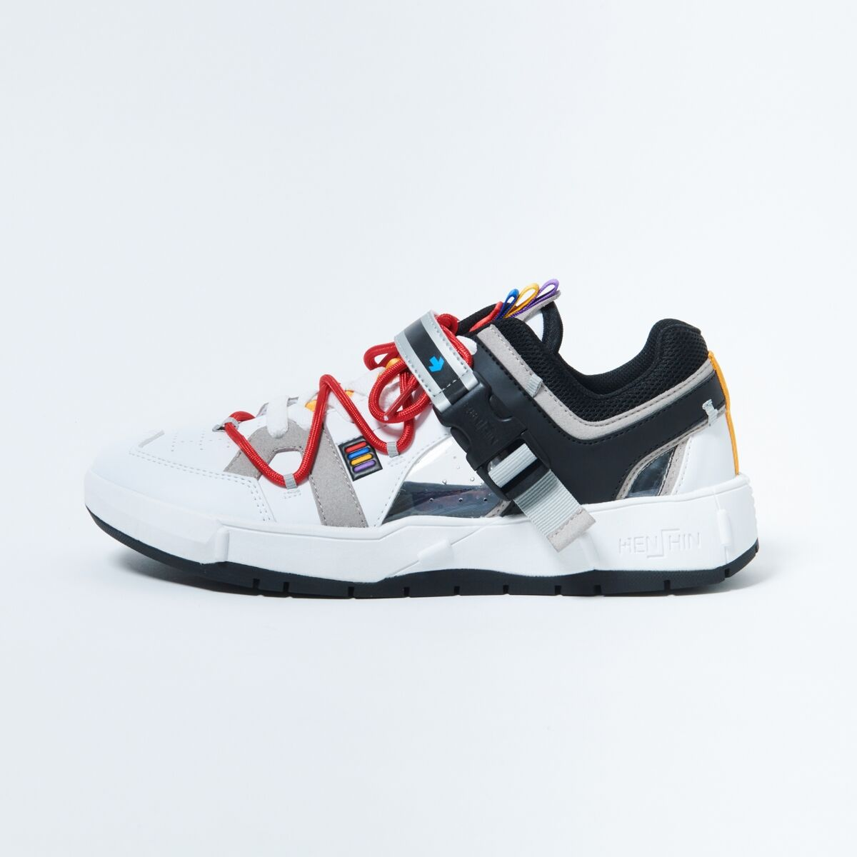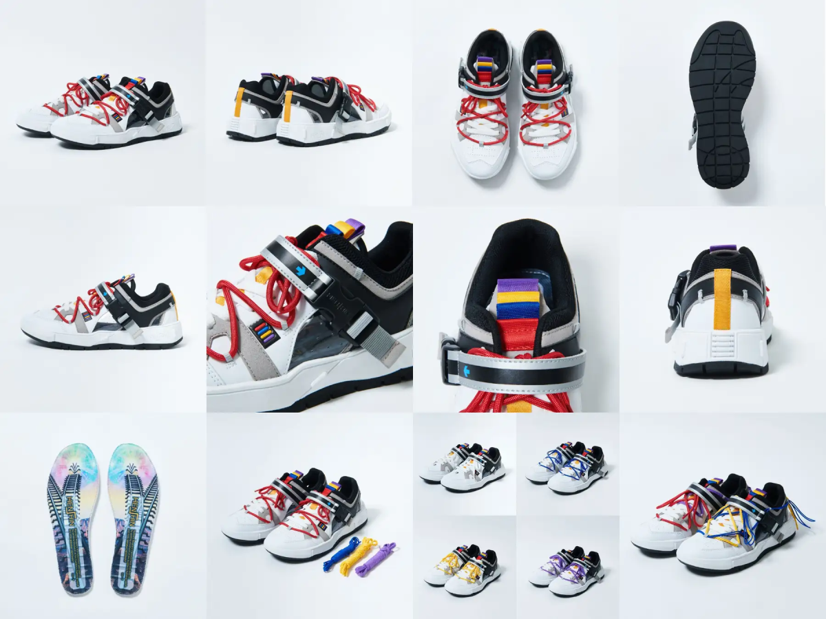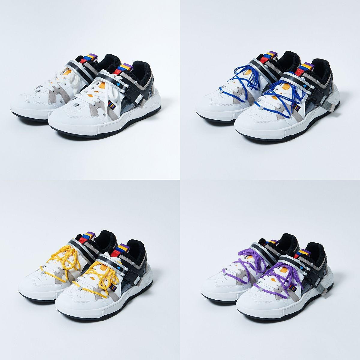 鞋款採用以白色為基調的簡約設計,搭配四種顏色的鞋帶(紅、藍、黃、紫),可依需求替換,展現不同的型態。鞋面還加入透明材質的設計,讓穿著時的襪子顏色能透過鞋面呈現,增添穿搭的趣味性。
