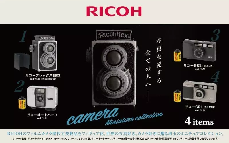 日本玩具公司 Kenelephant(ケンエレファント)與日本知名相機品牌 RICOH 合作推出 「RICOH 相機迷你模型收藏」,將同步以盒玩及轉蛋兩種形式發售,參考售價分別為每盒 550 日圓及每轉 500 日圓,預計於 2025 年 01 月發售!