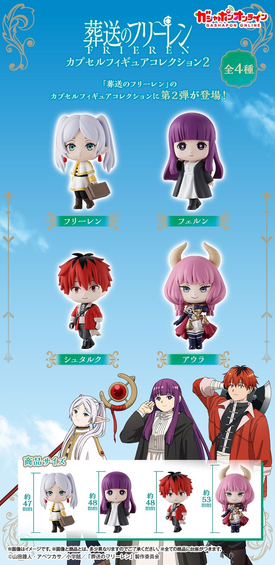 萬代公司轉蛋事業部 GASHAPON 推出的人氣動漫《葬送的芙莉蓮》主題商品「葬送的芙莉蓮 角色人物收藏」宣布推出人氣第二彈「葬送的芙莉蓮 角色人物收藏 2」轉蛋!參考售價為每轉 500 日圓,預計於 2025 年 04 月下旬開轉!