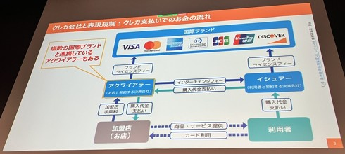 山田議員解釋了信用卡業界的複雜結構:在 Visa、Mastercard、JCB 等品牌之下,有發卡機構(Issuer)與收單機構(Acquirer),而在收單機構與商戶之間,還有決算代行公司負責一攬子協議處理。因此,這些層層疊加的中間機構讓外界難以判定究竟是誰主導了限制措施。