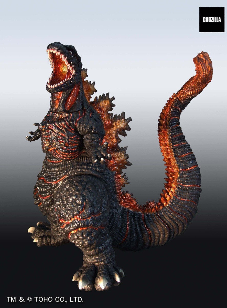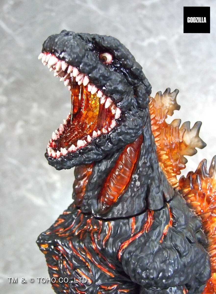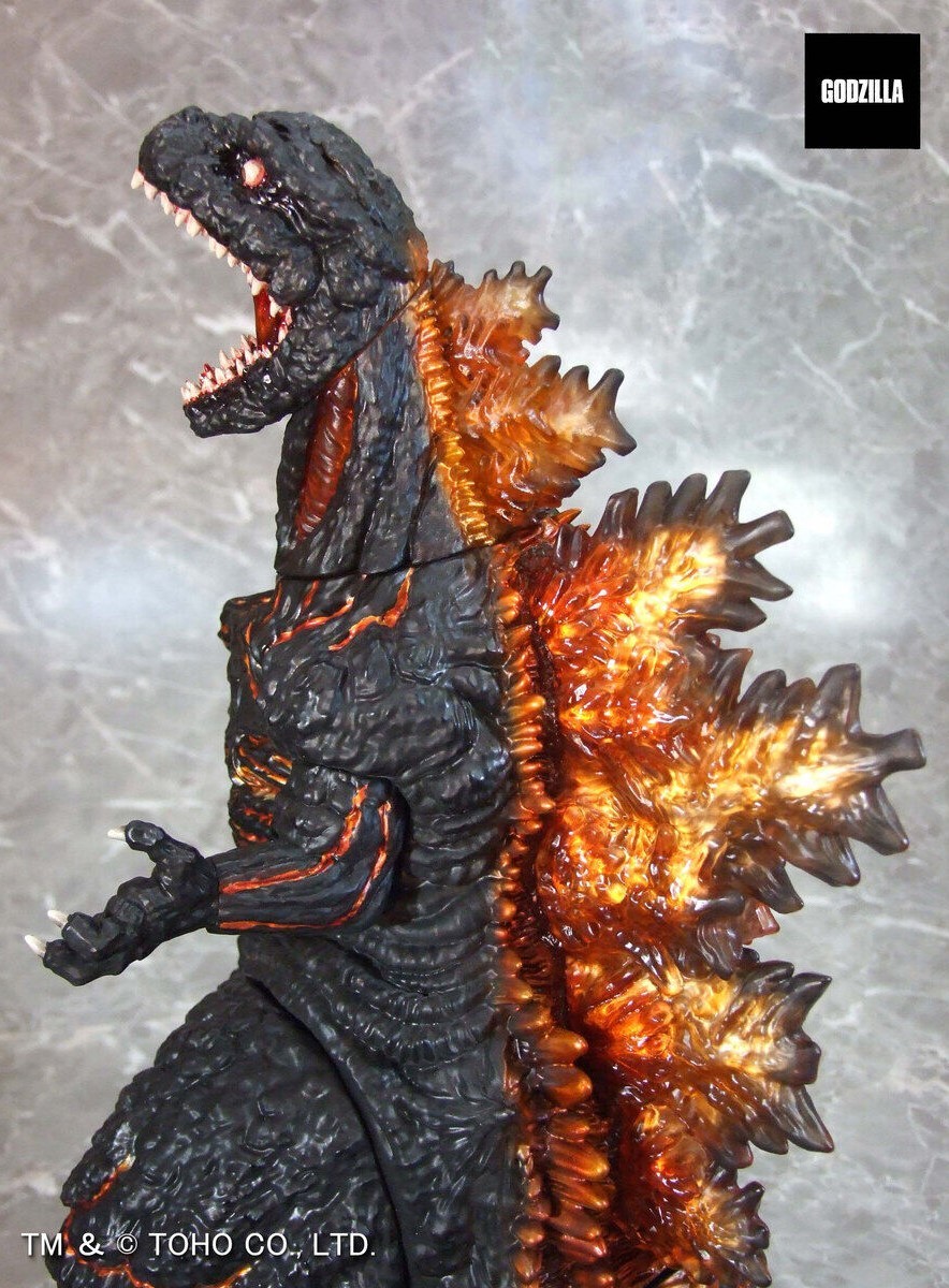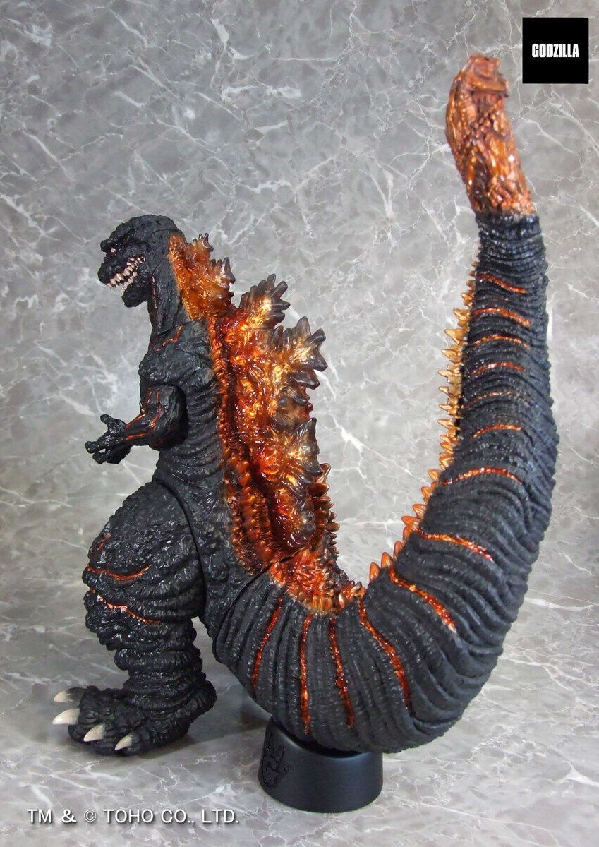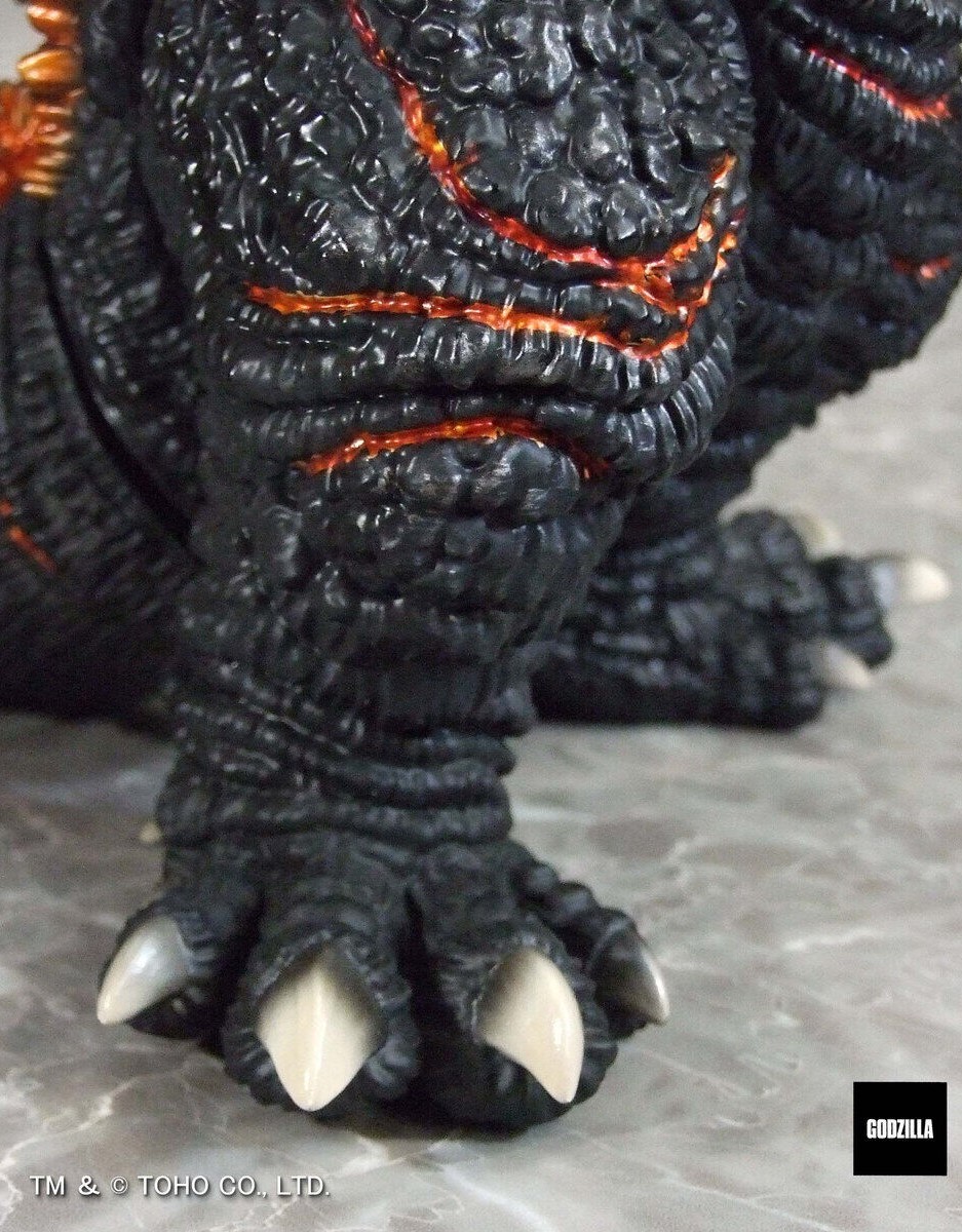 「G-SAURUS 哥吉拉(2016)」,採用約高 29 公分、長 34.5 公分的壓倒性份量尺寸,重現令人不寒而慄的第4形態哥吉拉!相較電影中設定,整體比例帶有一點低頭身的可愛感,但在造型與細節的刻劃上仍是保留如礁石般的粗糙皮膚、巨大且複雜的尾巴等帥氣風格,尤其不規則排列的一口例牙與特徵的小眼珠,更是展現了哥吉拉讓人畏懼的氣勢!