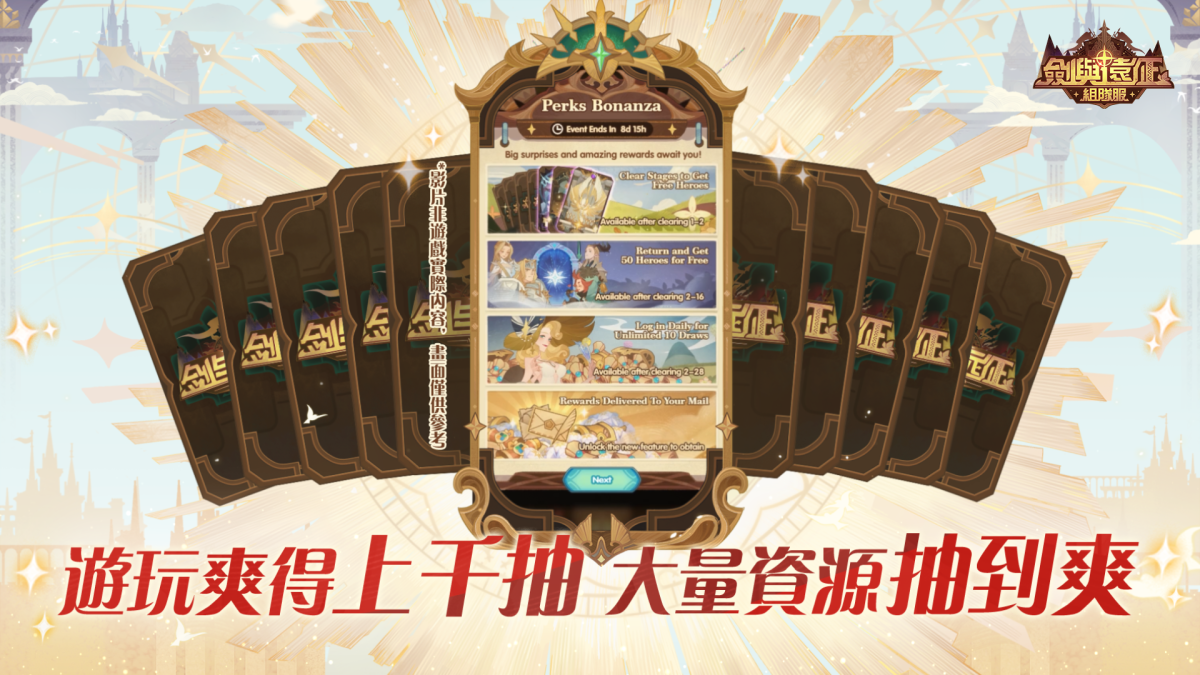 慶祝《劍與遠征 組隊服》全新上線,登入遊戲即可享受滿滿的福利活動。玩家們將能夠在首月免費獲得高達1000次的抽卡機會,輕鬆擁有強力英雄,減少遊戲初期的養成負擔。此外,遊戲還特別提供了終生每日10連抽的以及免費獲得包含SP英雄在內的所有英雄角色。無論是新手玩家還是老玩家,都能快速組建一支強大的隊伍,體驗無負擔的輕鬆遊戲樂趣。