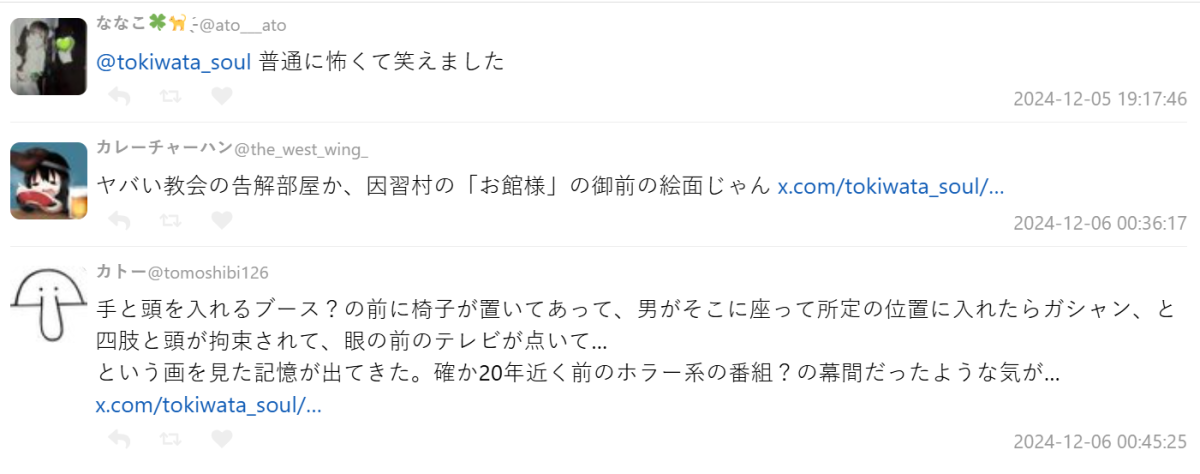 由於店員的設計是看不到臉龐的,有網友戲稱這根本像是告解室,給人一種莫名的恐怖氣息,也很想許多恐怖片會嚇人的場景。