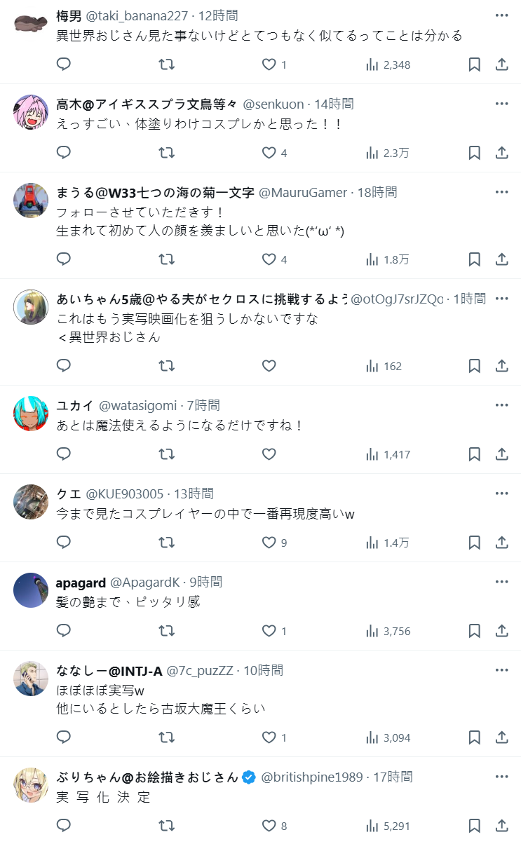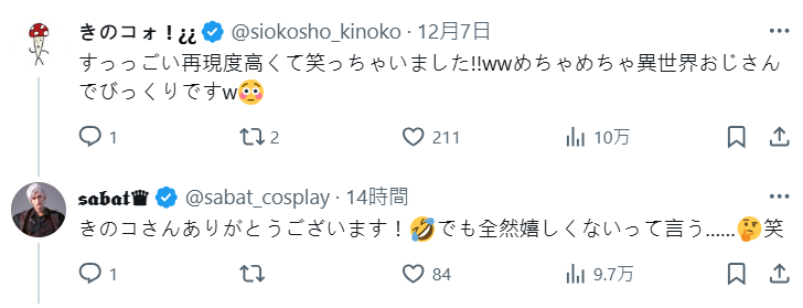 雖然獲得網友的一致好評,還原度真的太足了,簡直是二次元直接真實化的樣貌,不過 Sabat 自己也表示...雖然很感謝大家的滿意,但好像...完全高興不起來阿 www。