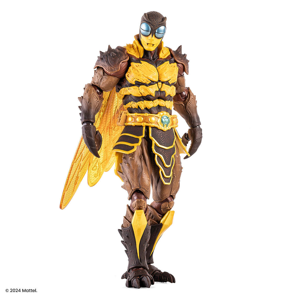 本次的蜜蜂人 1/6 比例可動人偶全高約 30.4 公分,造型參考了 1983 年開始發售的經典玩具線到 2002 年隨動畫播出重啟的 200x,甚至更之後的系列設計,將蜜蜂人改造為身著甲冑的帥氣形象,雕刻呈現出鎧甲覆蓋於精實肌肉上的造型細節,頭部複眼的生物感看起來更加的寫實,尖刺、粗糙的紋理都讓整體的精緻度大幅提升!