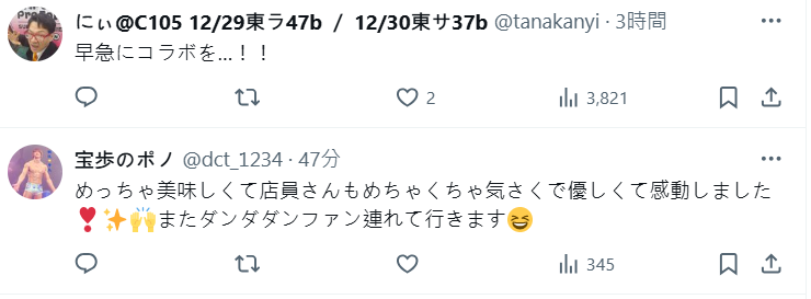 依照劇情,看來在餐廳會有一場激烈戰鬥,可以期待下一話會有怎樣的發展。也讓不少網友敲碗兩者合作,這真是粉絲夢寐以求的場景。「肉汁餃子のダンダダン」在日本有非常多店鋪,或許真有機會看到聯名菜單或更多合作企劃也說不定,就稍稍期待官方是否會攜手合作了吧 !