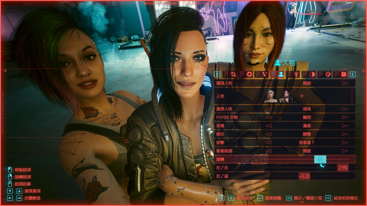 最棒的是,這一次也回應玩家們的需求,在進入拍照模式時,可以導入多達3位曾在主線、DLC出現過的NPC角色,而可以選擇的人物也超過20名。其功能與V本身一樣,能夠自由調整表情、姿勢、位置等,讓V與其他你所選擇的角色同框入鏡。