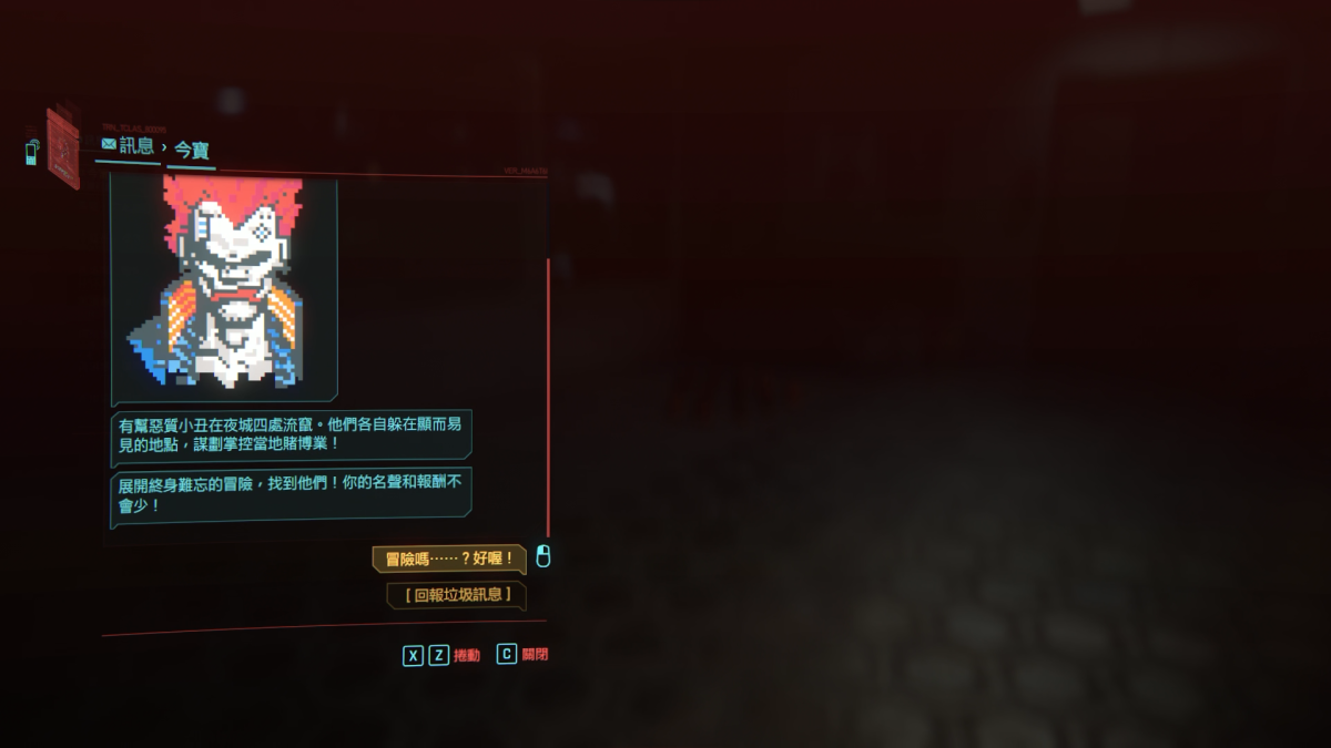 在開啟已經更新到2.2版本的《電馭叛客2077》之後,玩家將會在收到一則來自「今寶」的簡訊,在這裡V必須依照簡訊傳來的照片指示,找出坐落在十處地點的「小丑標誌」,完成這項特別的尋寶任務。