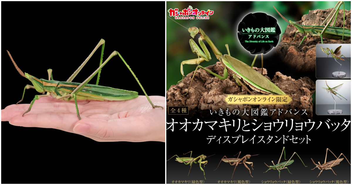日本萬代公司轉蛋玩具品牌 GASHAPON 所推出的豪華系列「生物大圖鑑Ultimate」,將好評推出最新的:「枯葉大刀螳&中華劍角蝗轉蛋展示架套組」,共有四種款式,一轉參考售價為 1,800 日圓,目前已在日本 GASHAPON ONLINE 線上開轉,預計於 2025 年 04 月發貨。