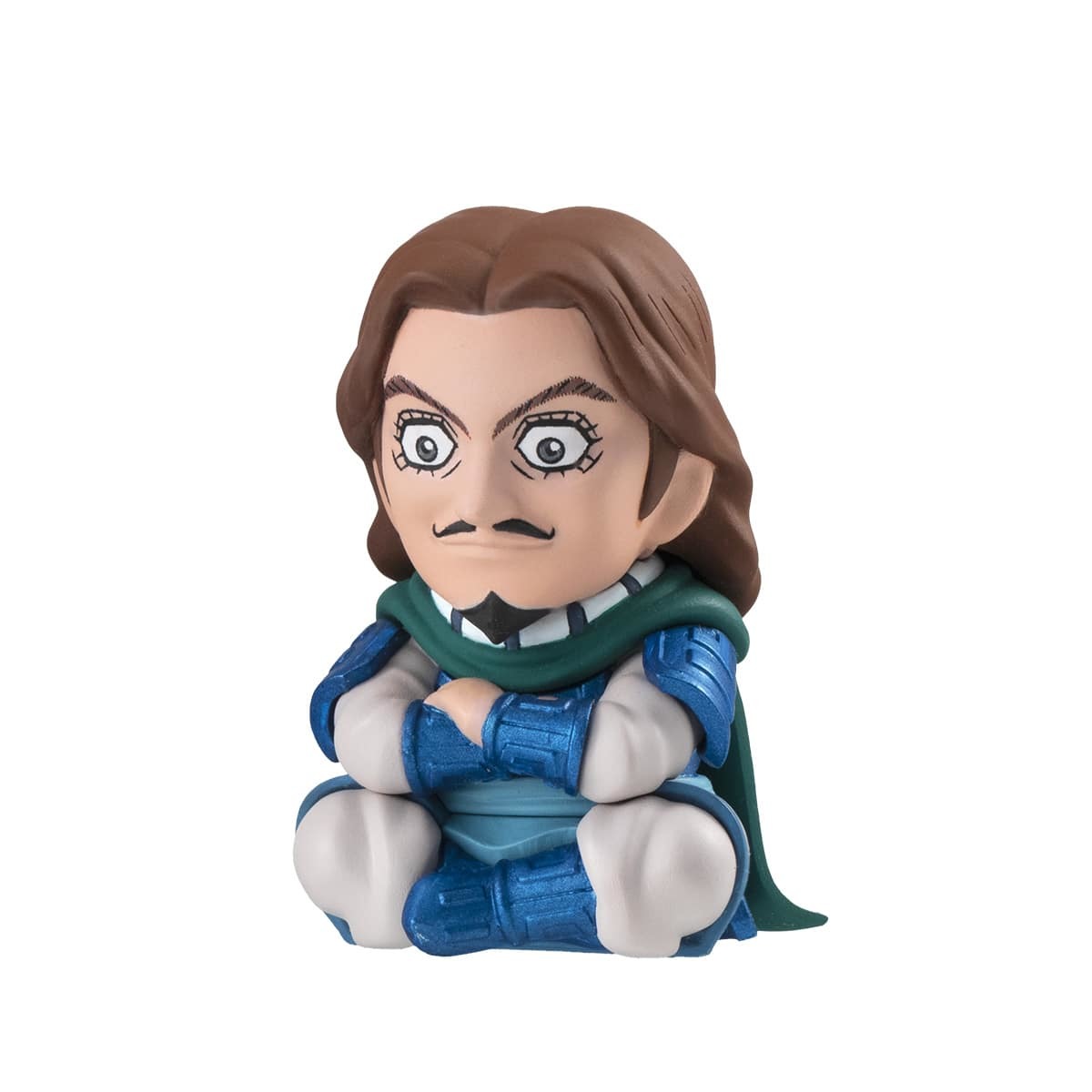 「等待中的王者天下角色」轉蛋是採用可愛的 SD 比例重新詮釋、在 4、5 公分的高度中形塑出角色特色,並以正在等待出陣時機為題打造的立體模型。這次第二彈收錄了活躍於不同時代之戰場的名將,包含讓中原各國聞之喪膽的秦之怪鳥「王騎」、秦王政時代的六大將軍之一「騰」,以及年輕世代武將中率領玉鳳、以高超槍術刺穿敵軍咽喉的「王賁」,還有能以天下大將軍視角來解讀戰場的戰術天才「蒙恬」。