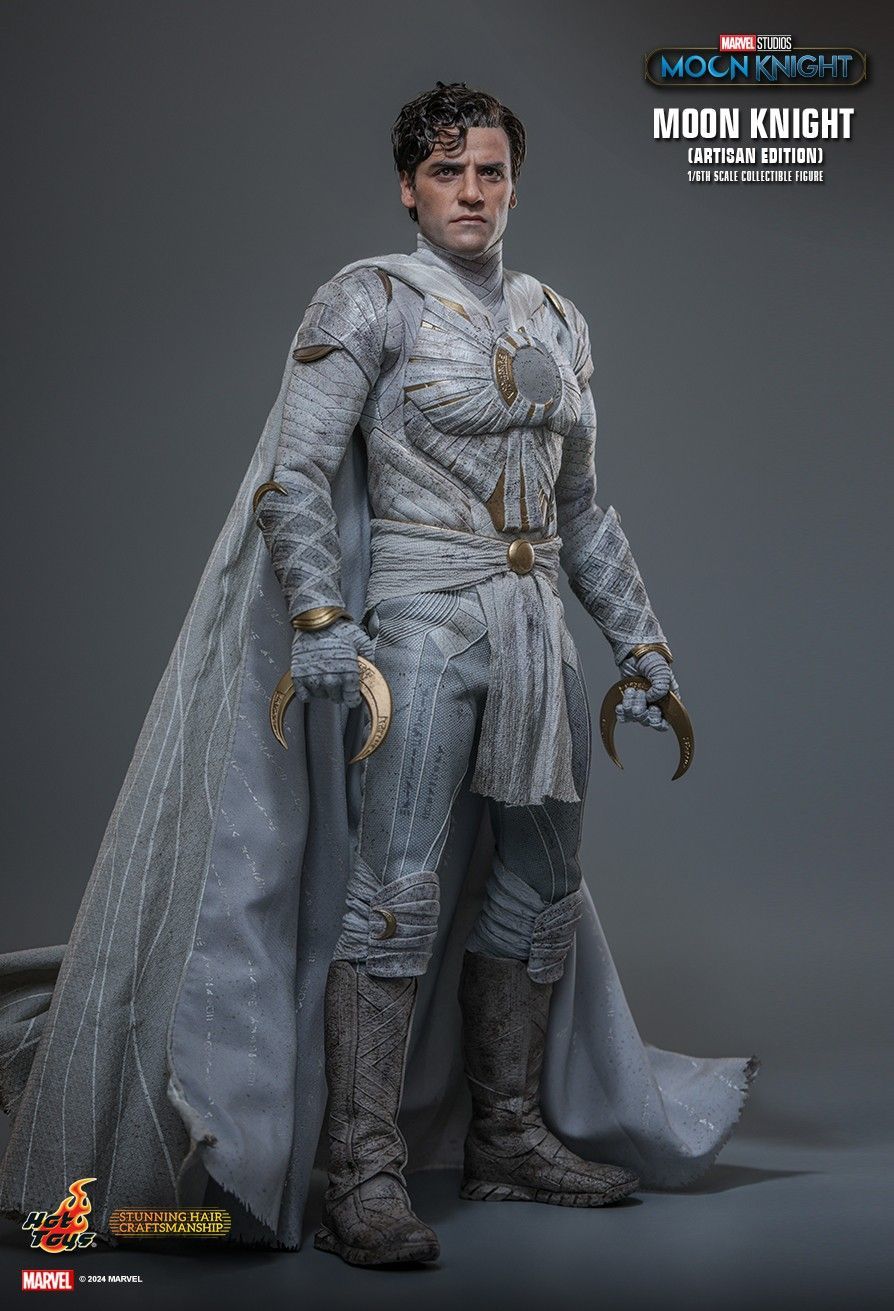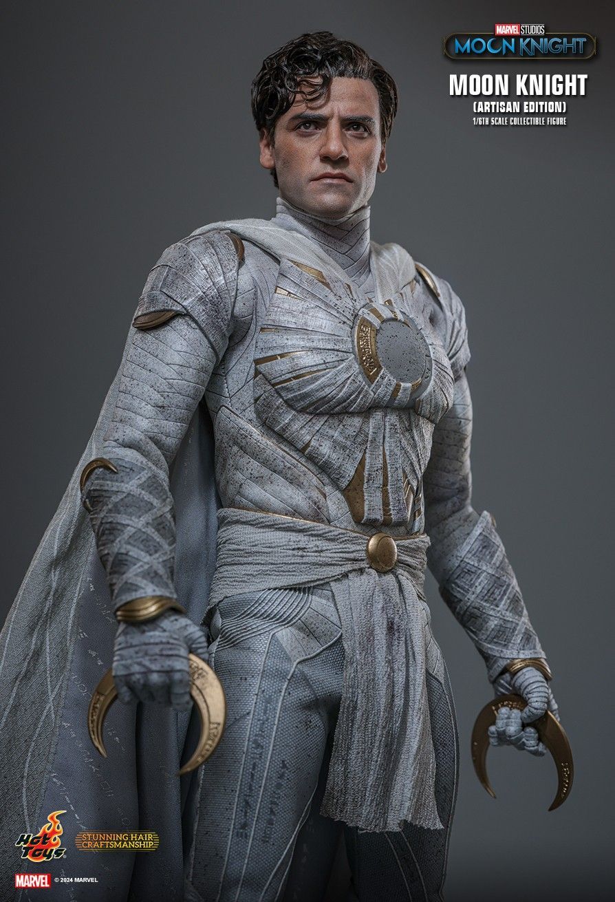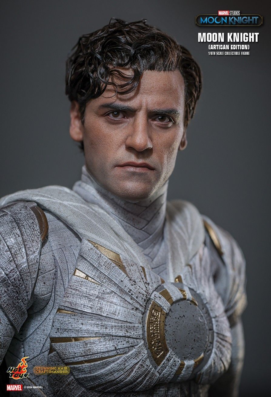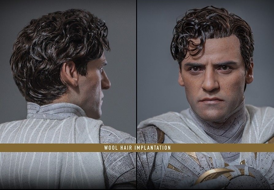 本次的月光騎士 Artisan Edition 1/6 比例收藏級可動人偶高約 29 公分,同樣以新規雕刻還原演員奧斯卡·伊薩克(Óscar Isaac)的深邃的五官並在眼球部分做有轉動機構可以微調神情,而 Artisan Edition 植髮版本更以精巧的工藝一根根將馬克的頭髮植入,讓整體看起來更加逼真!