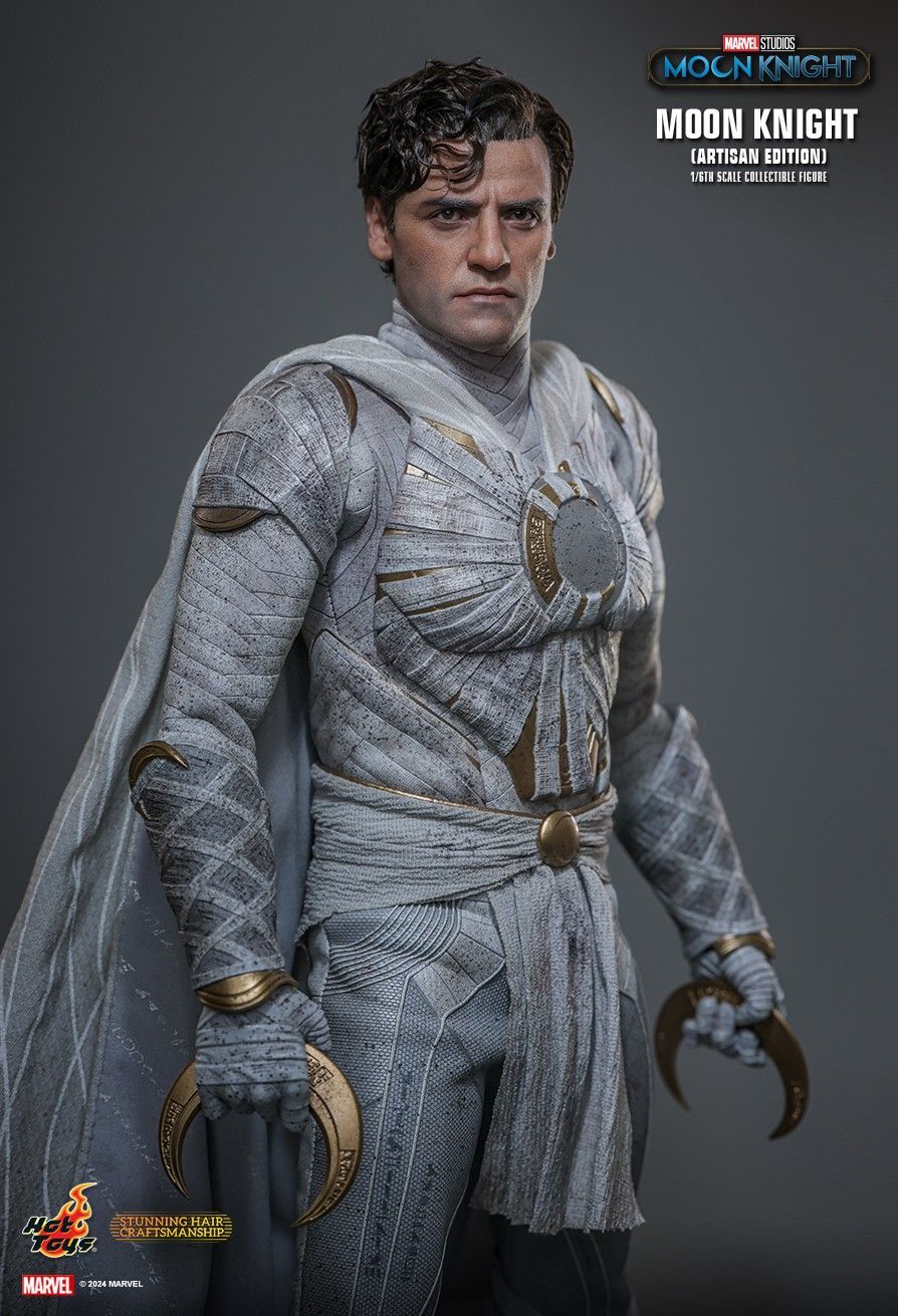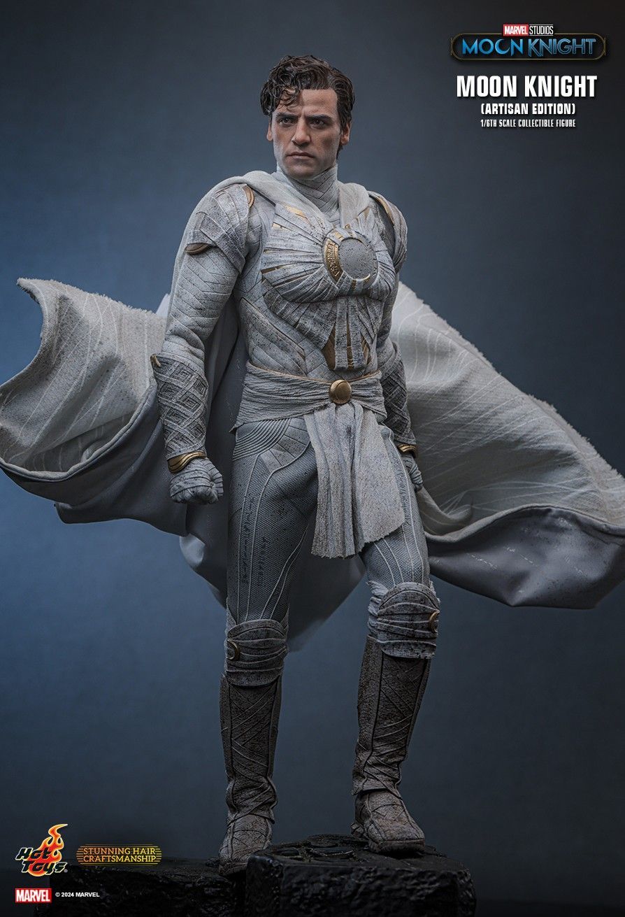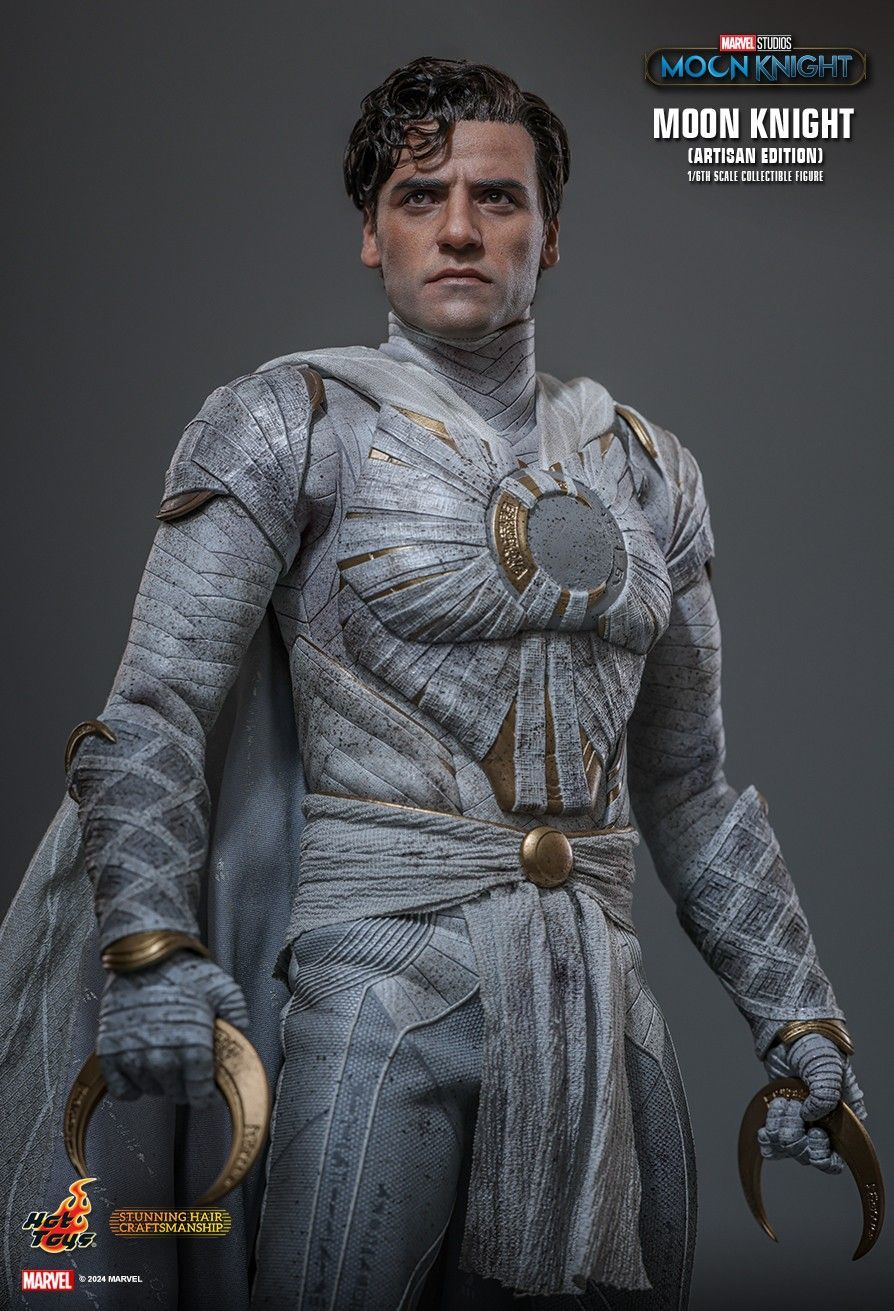 本次的月光騎士 Artisan Edition 1/6 比例收藏級可動人偶高約 29 公分,同樣以新規雕刻還原演員奧斯卡·伊薩克(Óscar Isaac)的深邃的五官並在眼球部分做有轉動機構可以微調神情,而 Artisan Edition 植髮版本更以精巧的工藝一根根將馬克的頭髮植入,讓整體看起來更加逼真!