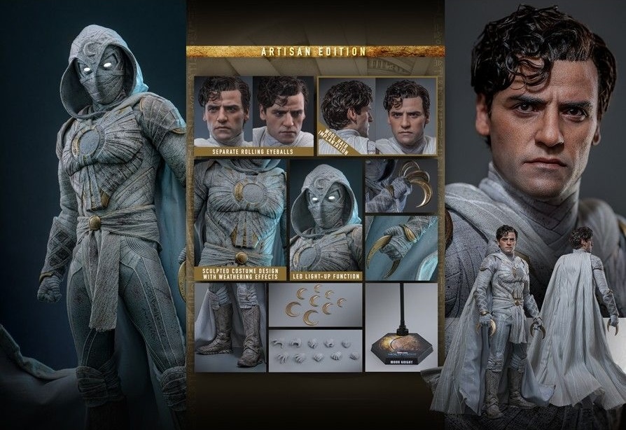 世界知名的香港玩具廠牌 Hot Toys 本次除「騎士先生」外也同步發表了另一件以漫威 2022 年在串流平台推出的網路影集《月光騎士》為主題的新商品——「月光騎士 Artisan Edition」1/6 比例收藏級可動人偶,參考售價為 2,780 港幣,全球限量 2,500 套,預計於 2025 年 10 月至 2026 年 03 月間發售!