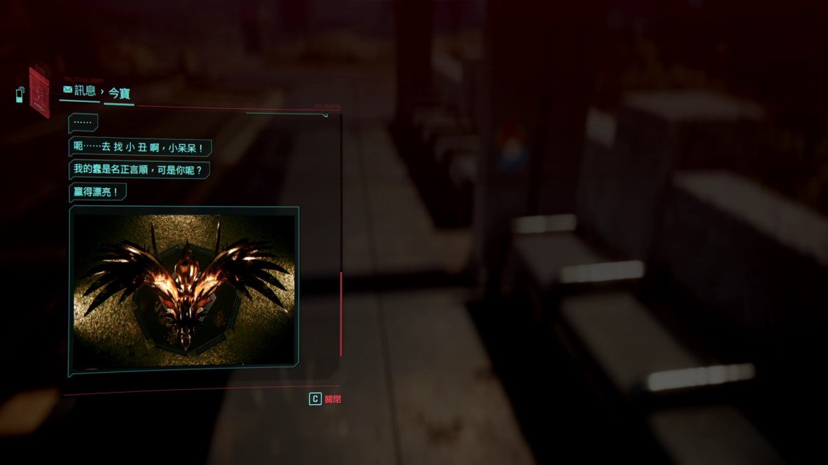 那麼,這項聯動任務該如何開始,又該如何找到這些分布各處的「小丑標誌」呢?在完成《電馭叛客2077》2.2版更新檔並進入遊戲後,V就會立即收到一則由「今寶」發送的簡訊,並要求依照線索指示,前往照片所示的地點,尋找這些小丑標誌。