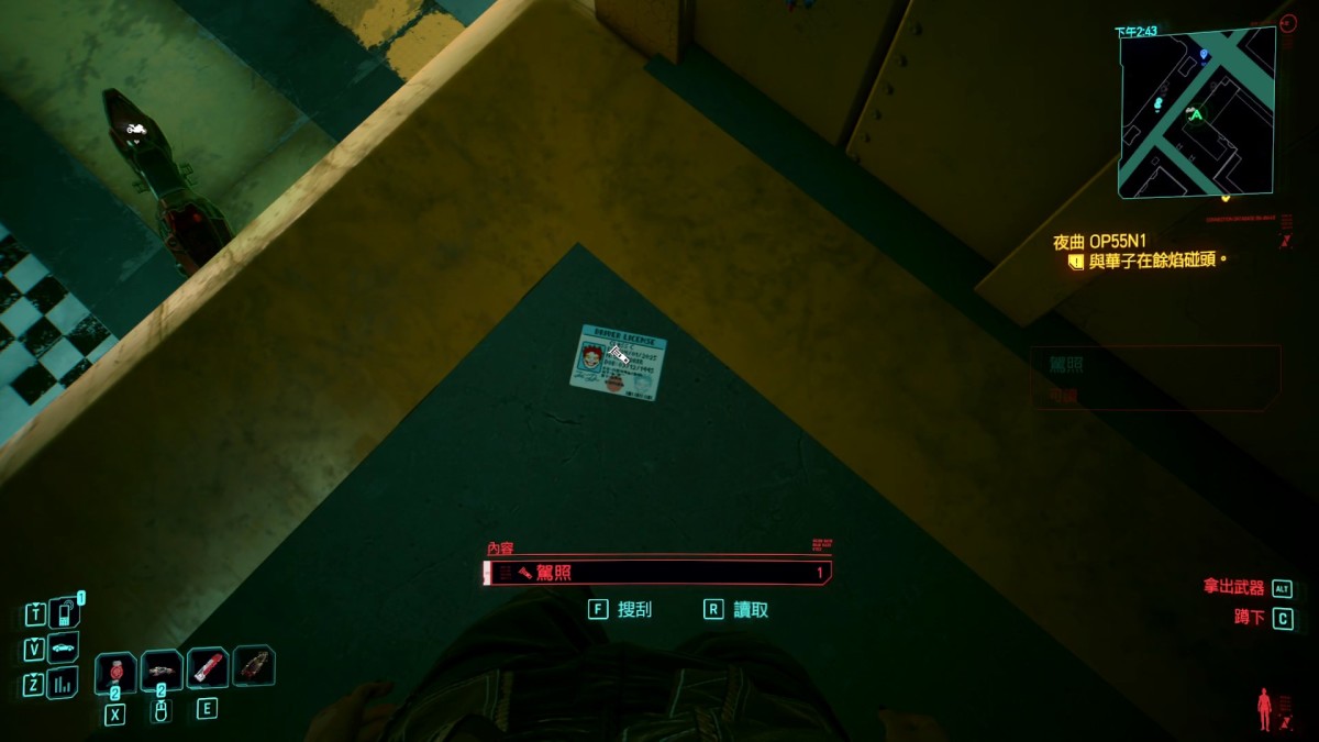而在抵達德拉曼總部後,玩家必須跳到總部的上方,也就是靠近招牌的位置,就會發現一張名為「駕照」的卡片,撿起後就獲得第五個線索指示。