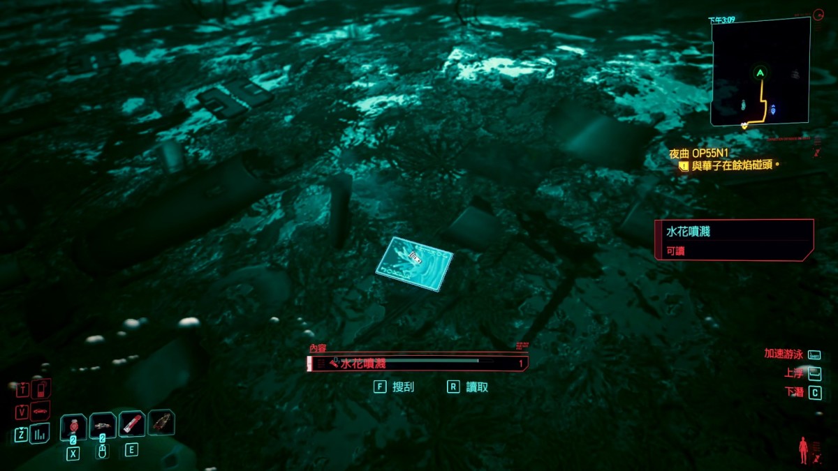 至於卡片會在哪裡呢?由於這裡是靠海的地方,所以卡片不會是在陸地上——也就是說,玩家必須跳進水裡,往下潛就會看到一張名為「水花噴濺」的卡片,撿起它就能得到第六個指示位置。