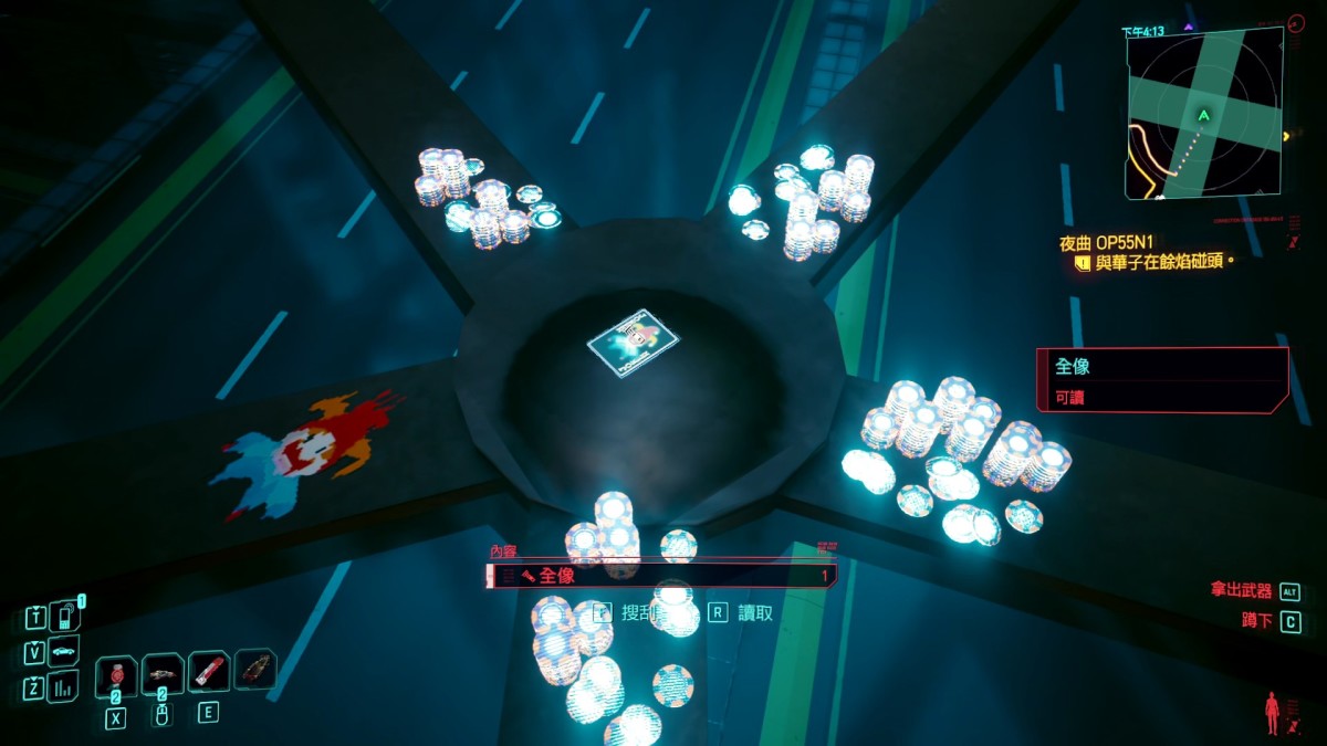這個地方你也一定來過——特別是當你在尋找蕾貝卡的散彈槍時,你一定來過這裡。只不過,這一次小丑牌任務要我們來的,是企業廣場圓環的最頂端,也就是投射出兩條投影鯉魚的中心位置。