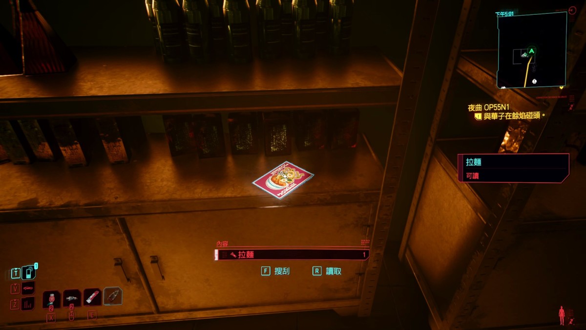 而這個地方有點隱密,因為小丑標誌的位置並不在紅鶴附近,玩家必須要往櫃檯的右手邊前進,之後就會看到靠牆的餐椅附近印著小丑標誌,然後打開門,就會看到放在櫃子上的卡片「拉麵」,就完成了這一趟的尋寶之旅。