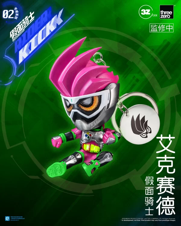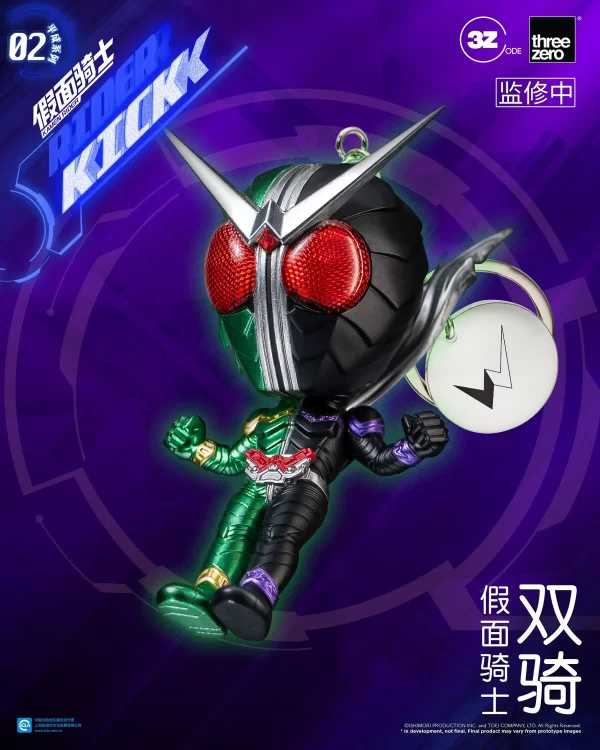香港玩具廠牌 threezero 旗下主打潮流服裝及精品的 「Code threezero」推出以長青特攝系列假面騎士為主題的新商品——「假面騎士 平成系列 02 鑰匙扣」盲盒,官網 10 盒合併販售參考售價為 79.90 美元,預計於 2025 年第二季發售!
