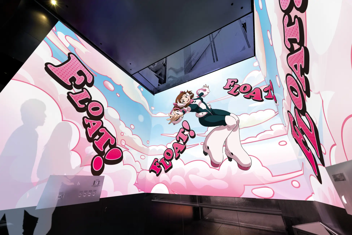 以《我的英雄學院》動畫為中心,各種角色特製的動畫會在搭乘上樓的電梯中播放,以三面牆的包圍著乘客,感受即將入場的氣氛。